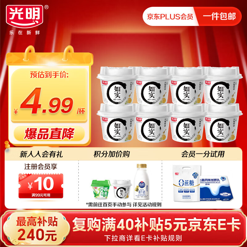 Plus领300-30券 领35-15券 光明 如实酸奶原味 135