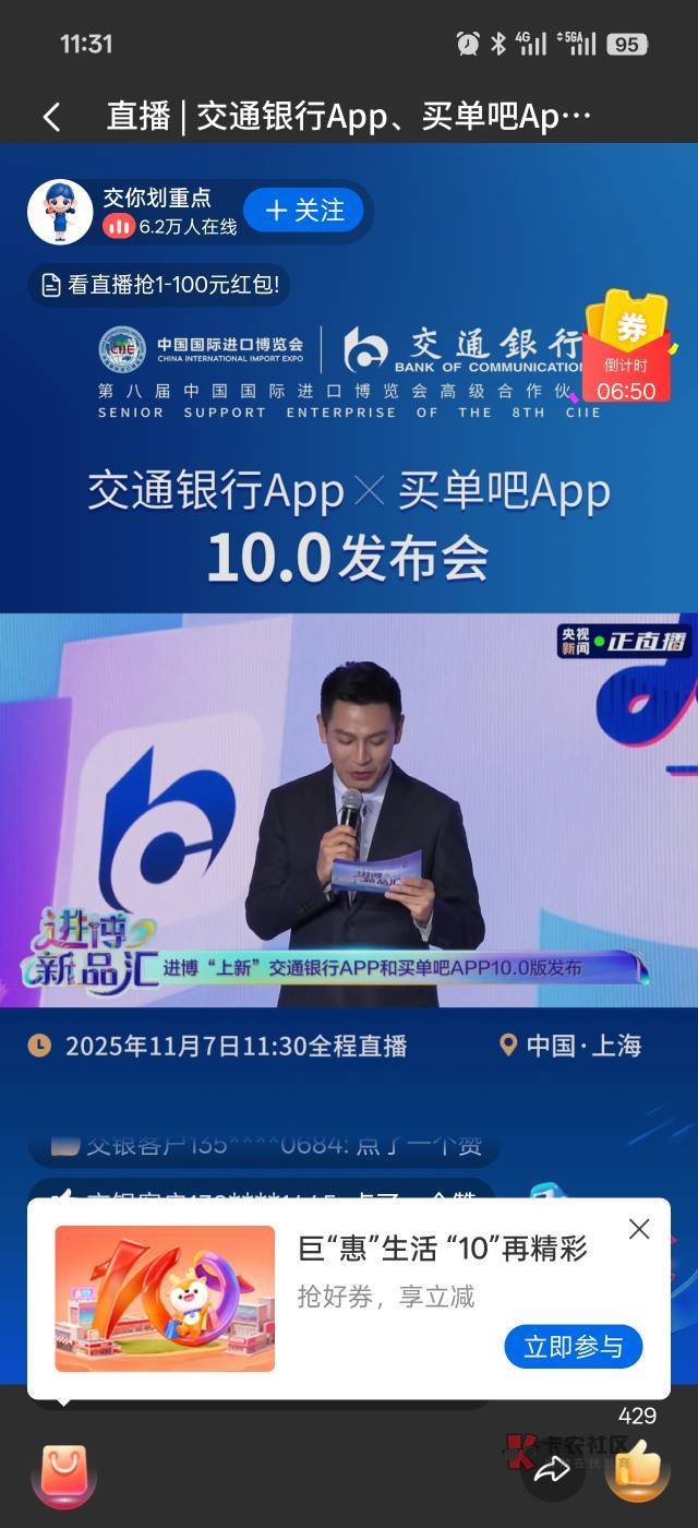 看直播,七分钟,领支付券