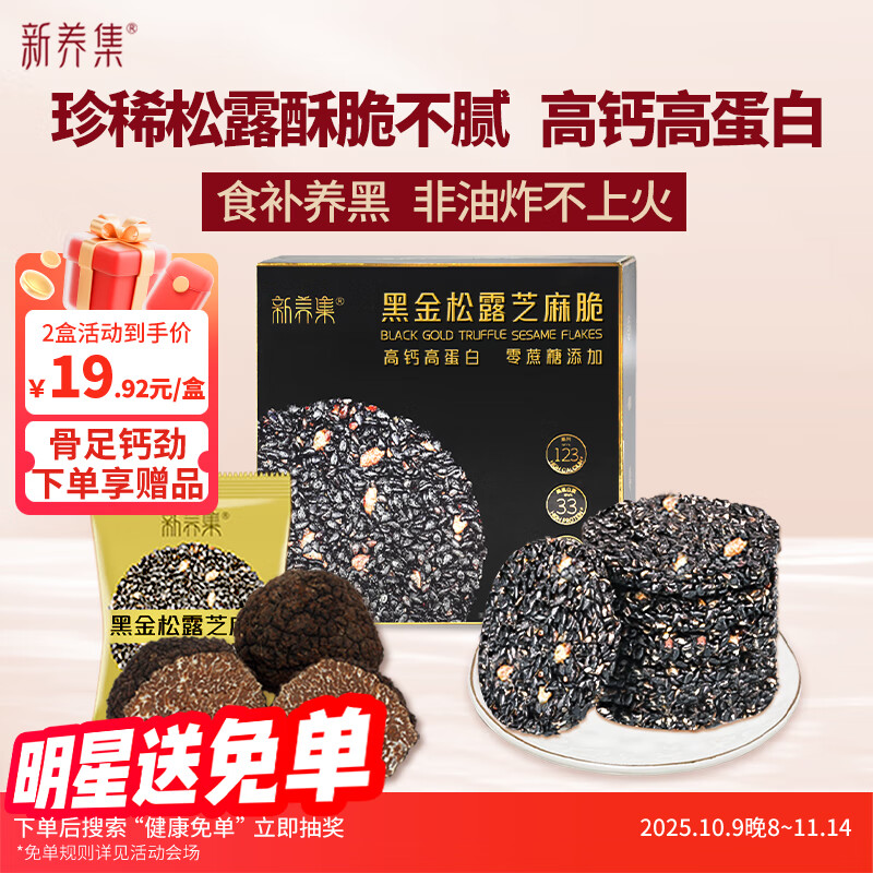 新养集黑金松露黑桑葚黑芝麻饼礼盒126g如弹9.6折立减砸10奍