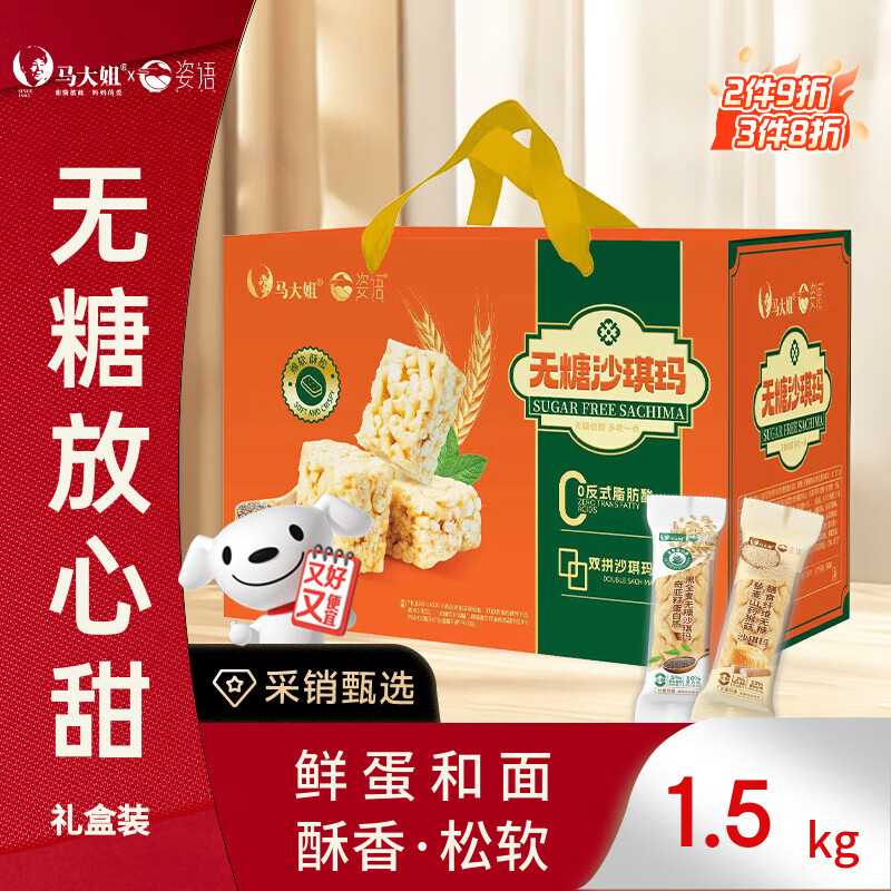 Plus领9折补贴卷 再领49-20券 自营马大姐 无糖沙琪玛双拼礼盒1.5kg Plus拍下24.1元;到手3斤;才8/斤