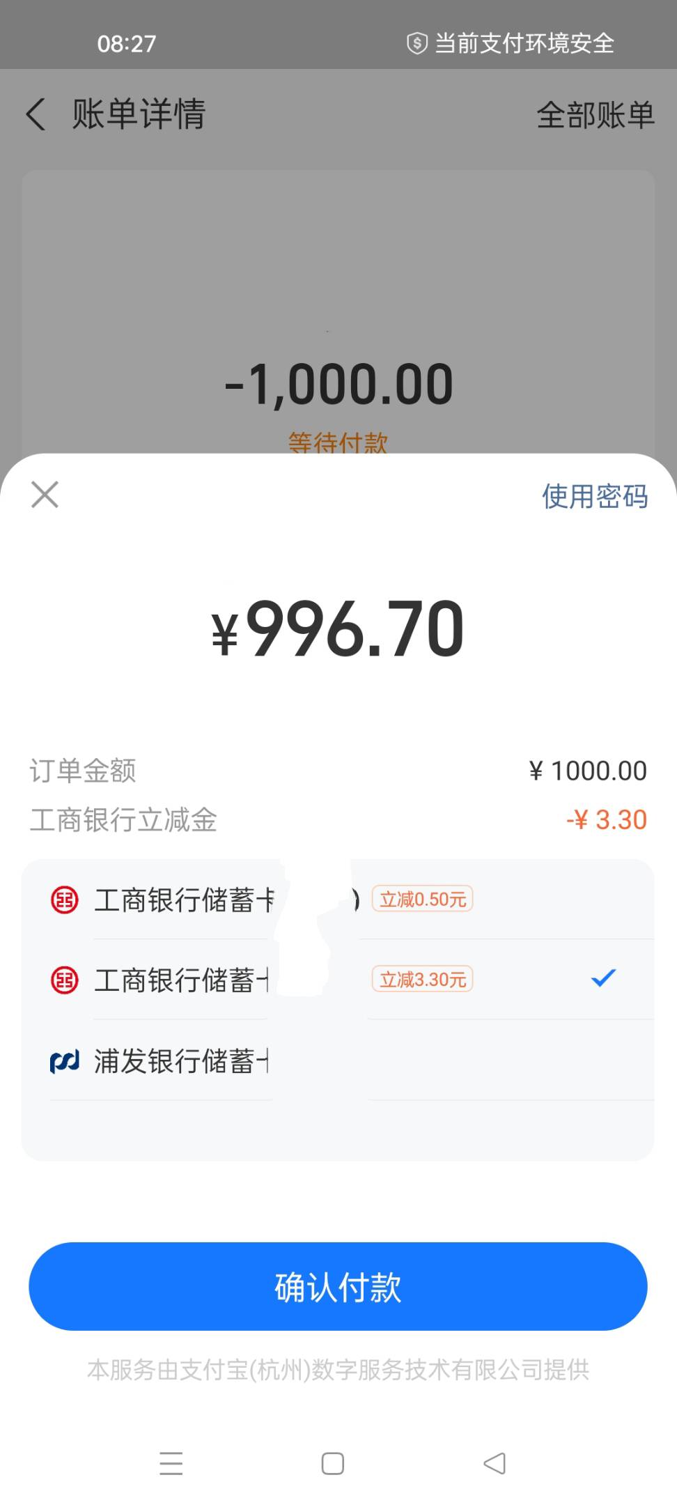 辽宁工行三类钱包,zfb收付款转账,两次优惠,1000-3.5和1000-3.3,自测