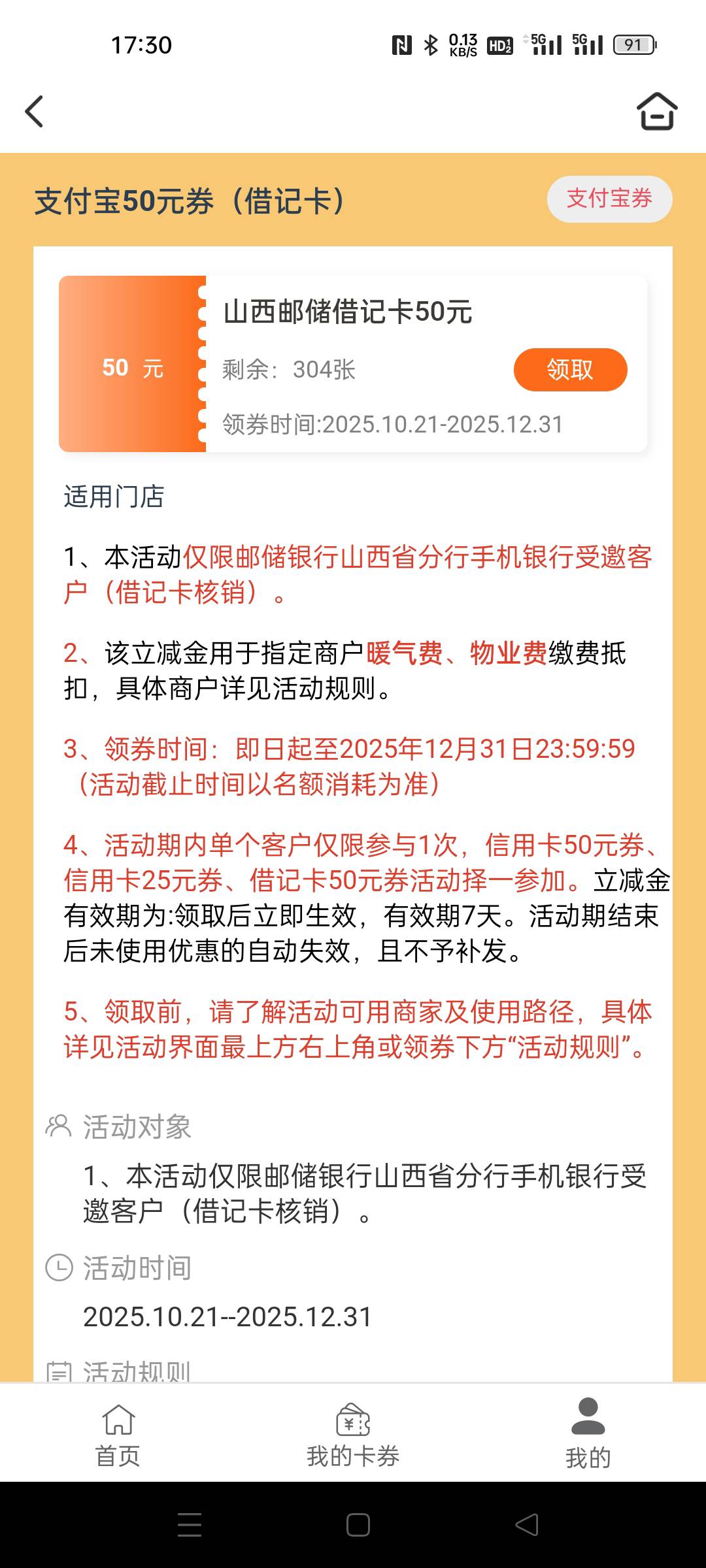 山西邮储50立减金活动,只能抵扣指定商户暖气费和物业费。 ...