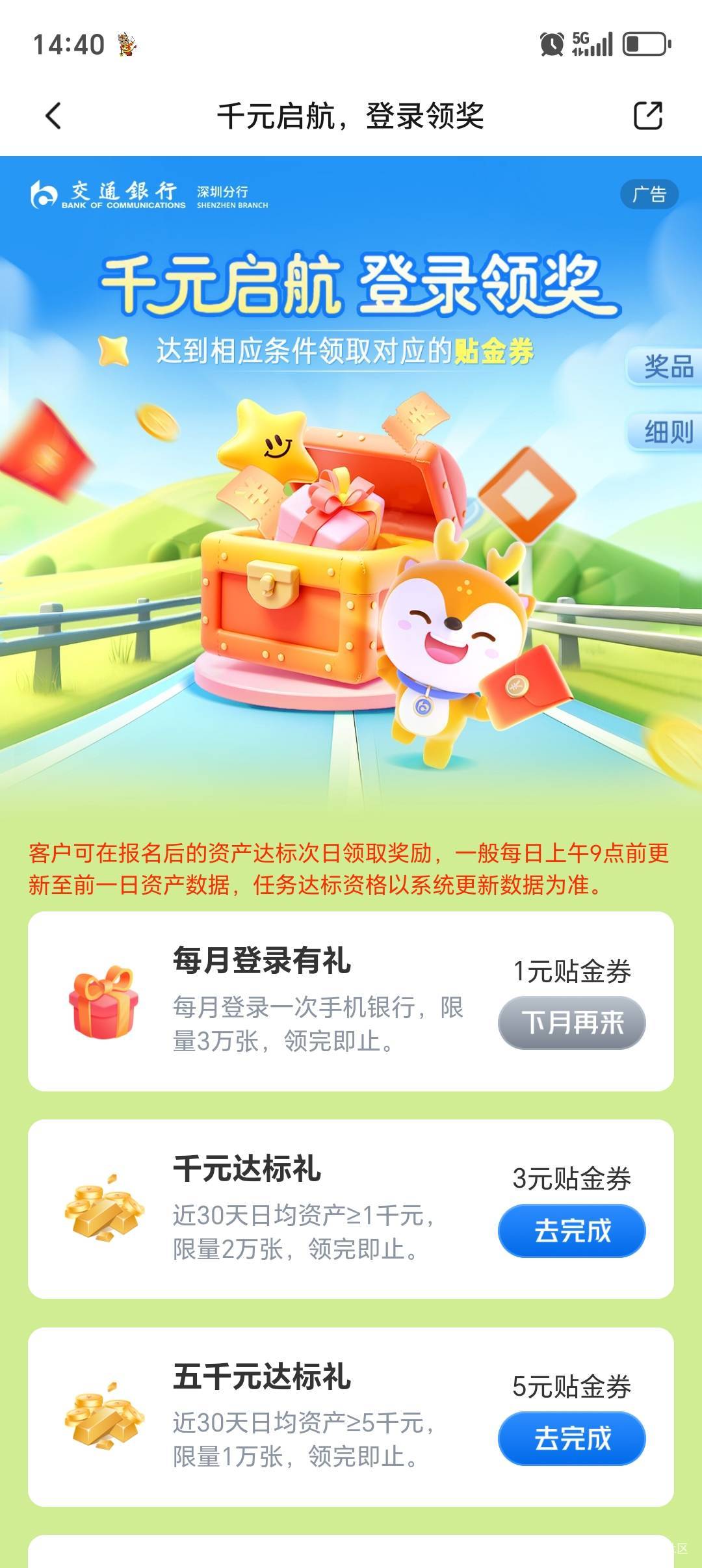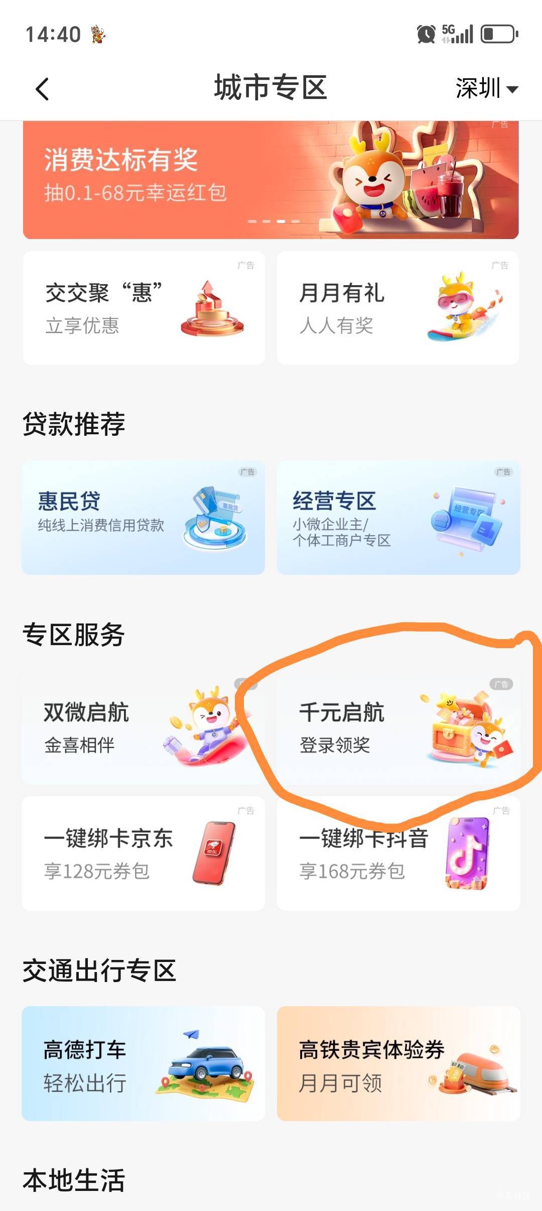交行app,深圳专区,登录礼