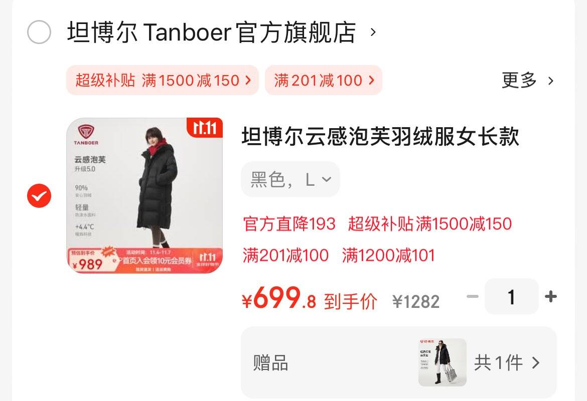坦博尔泡芙5.0长款羽绒服 Plus凑后699元 赠法式背包 领 领 领 拍 凑