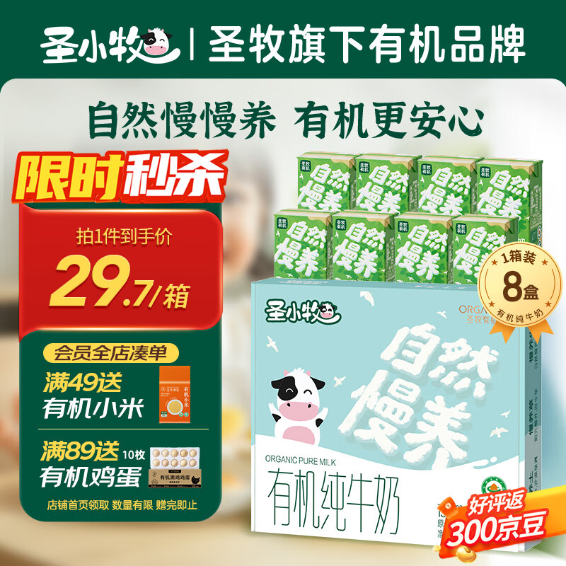Plus领9折券 圣小牧圣牧有机儿童牛奶4.5g蛋白150mg高钙12