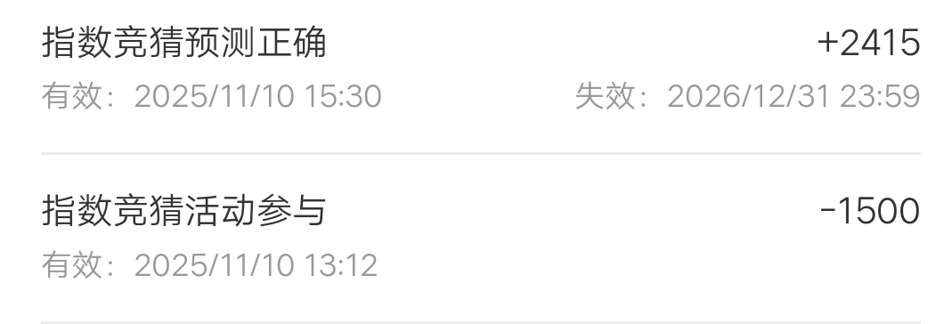 指数猜涨跌活动不会玩的可以在13.00左右用ai截图主界面和活动规则输入谁是冠军,猜中下注积分翻倍,不大概率中