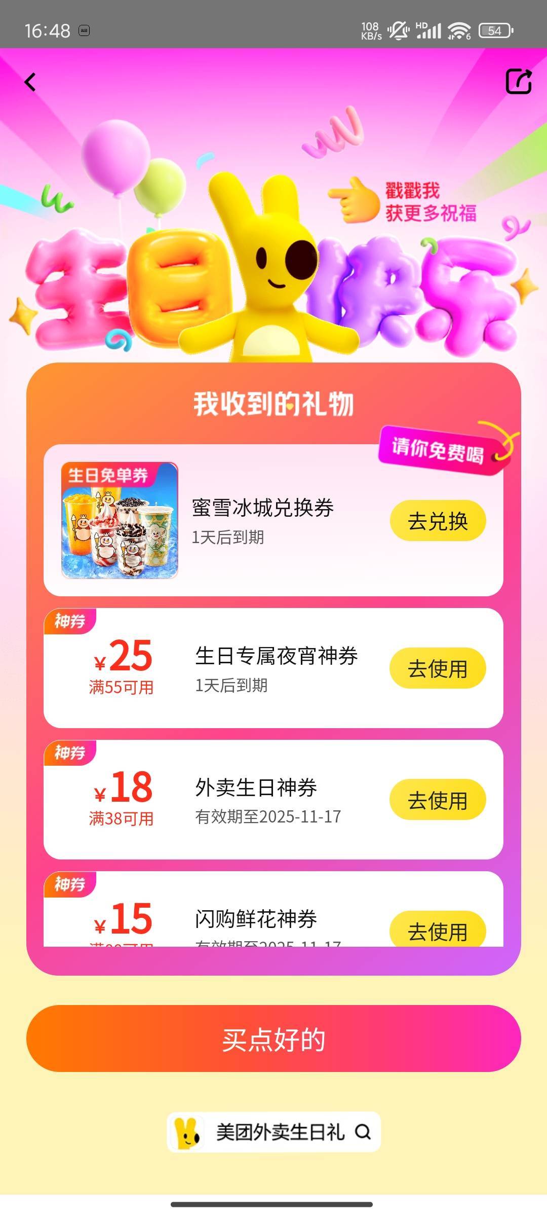 美团生日礼