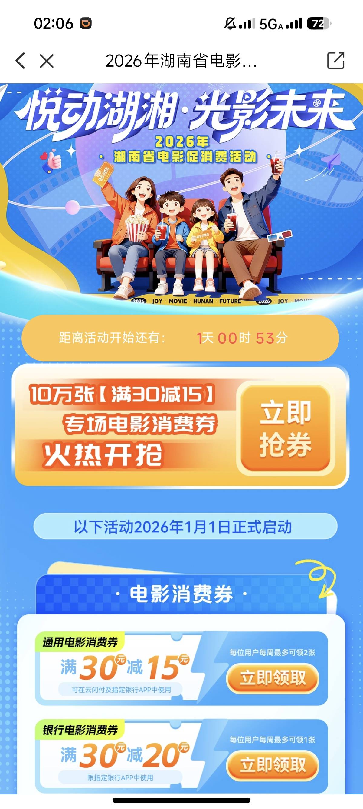 活动预告:2026年湖南电影票消费券活动