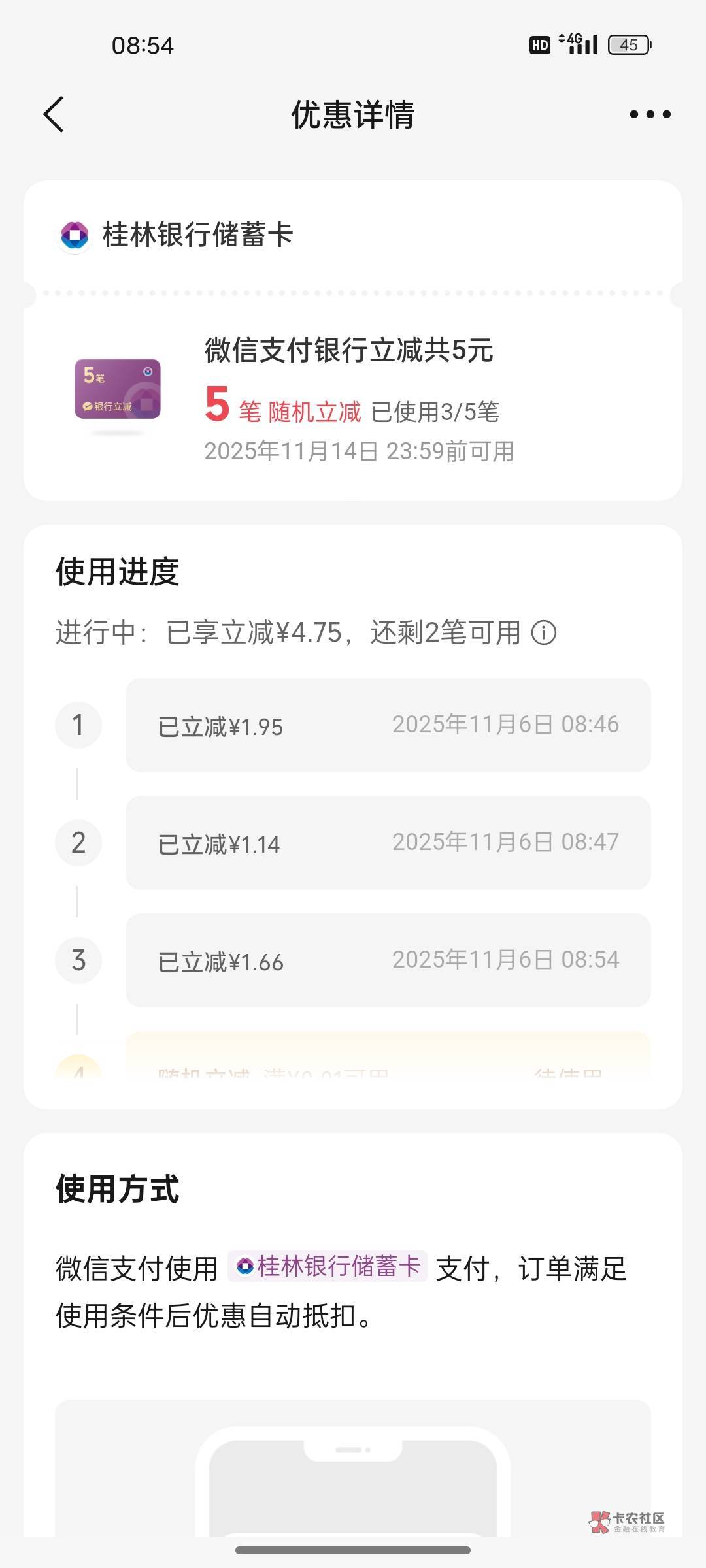 - 富滇银行抖音卡包里没有减8,然后我去团购要点10元以上的才会显示减8,10元以下的显示