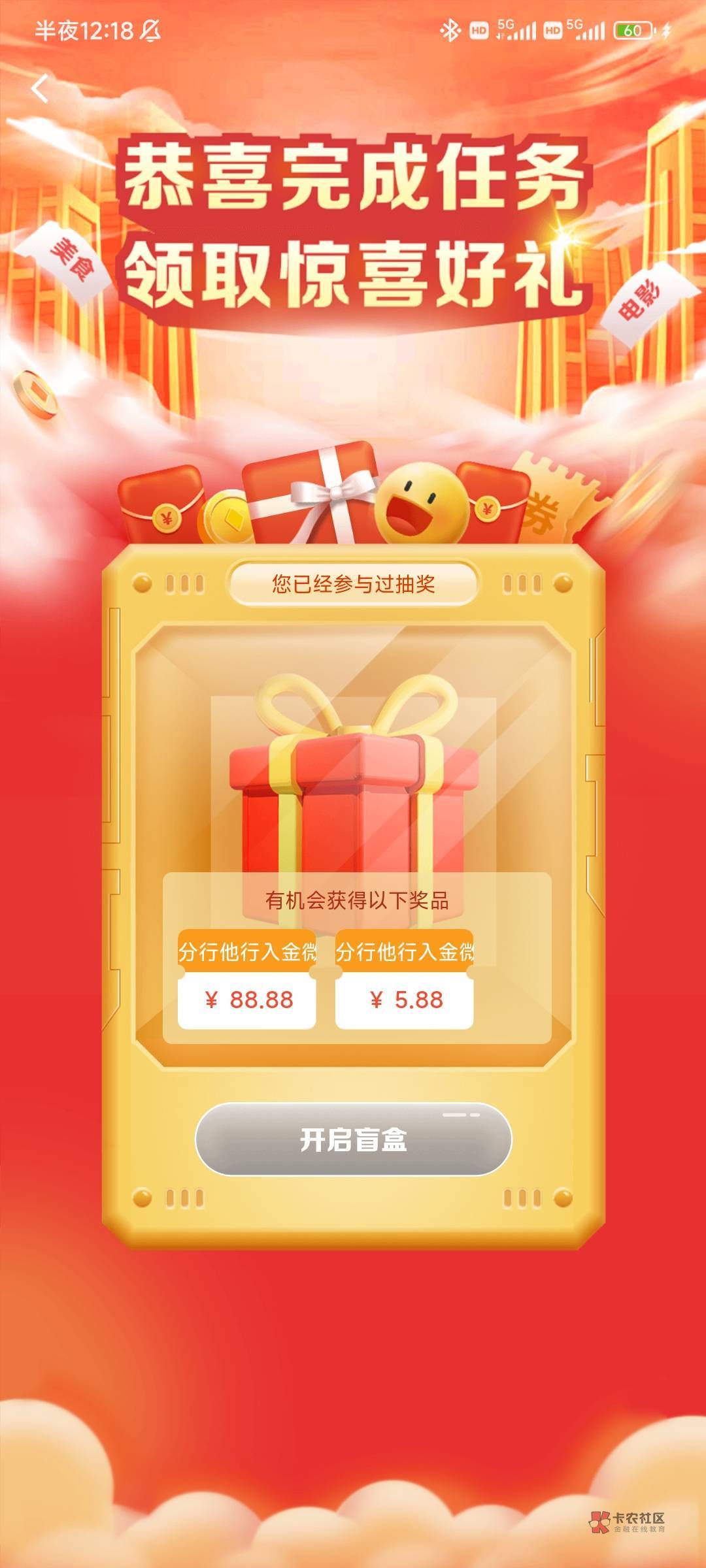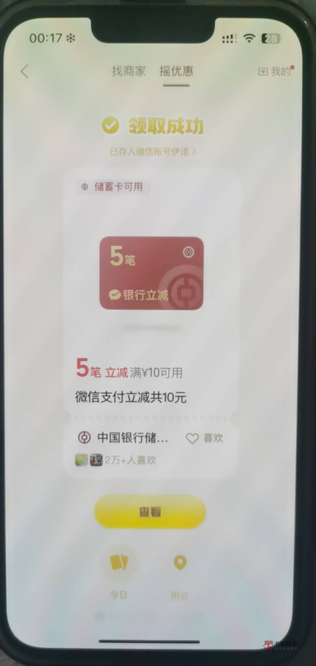 微信摇一摇中行5笔10毛