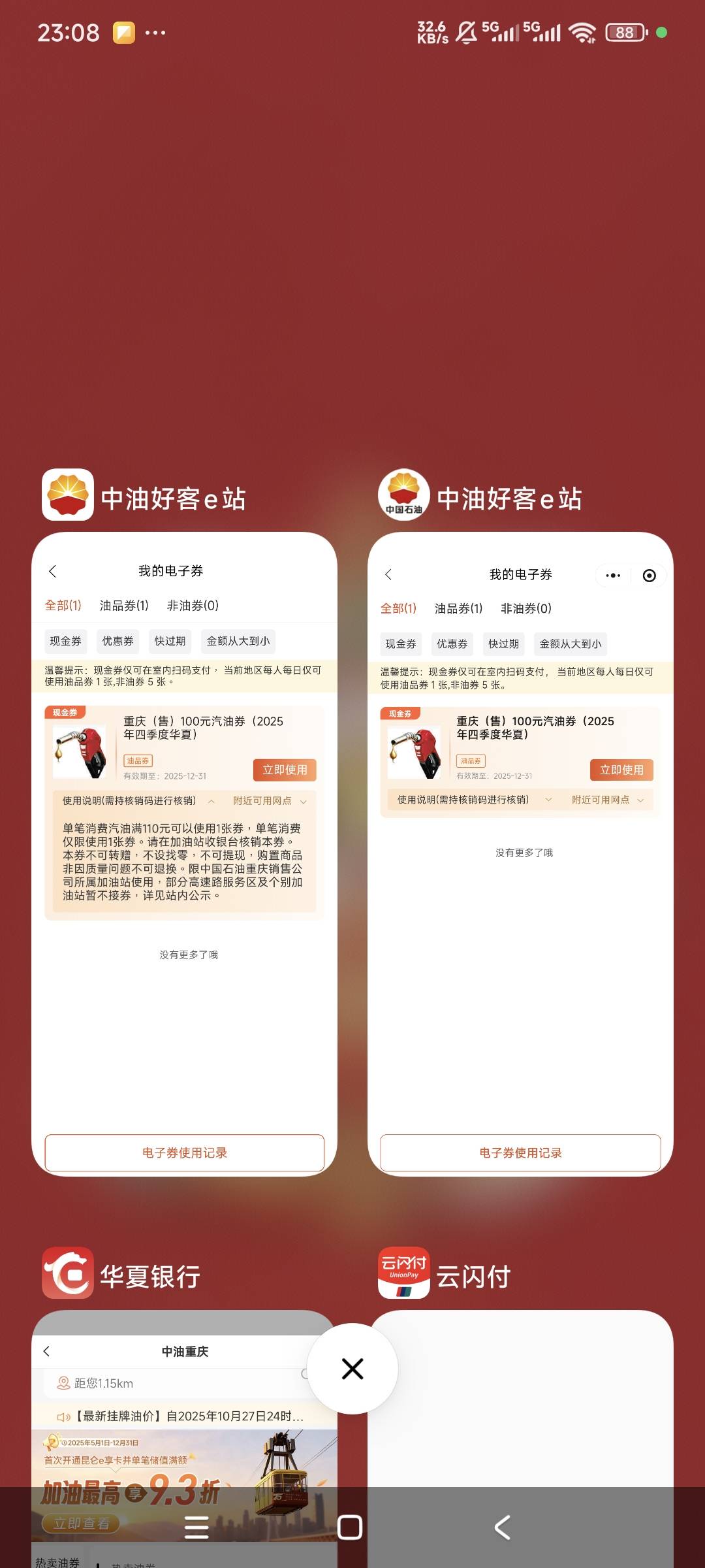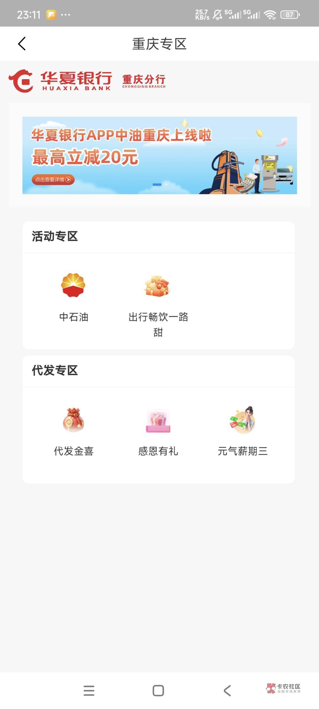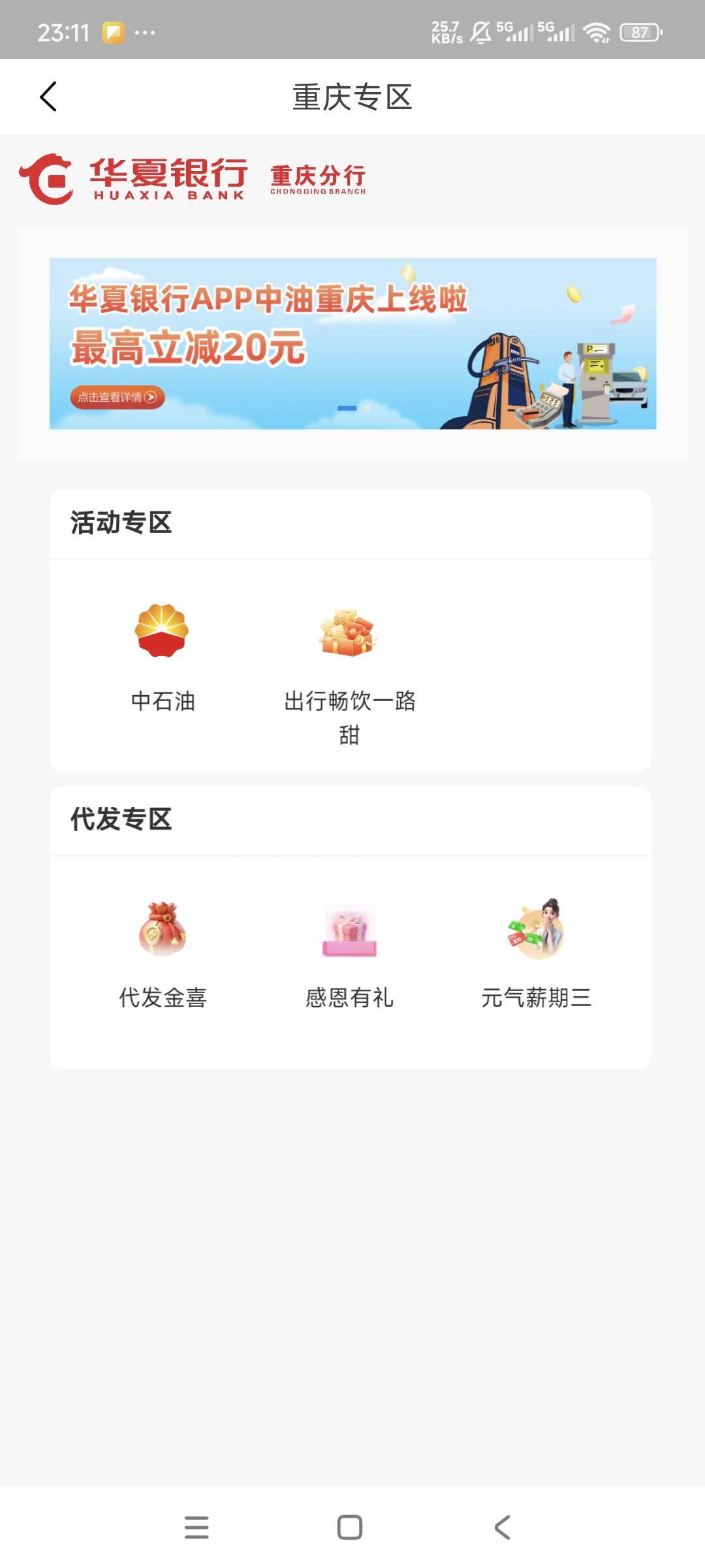 H夏银行重庆城市专区中石油满20.1立减20,目测长沙卡支付出优惠,硬通货,速度冲