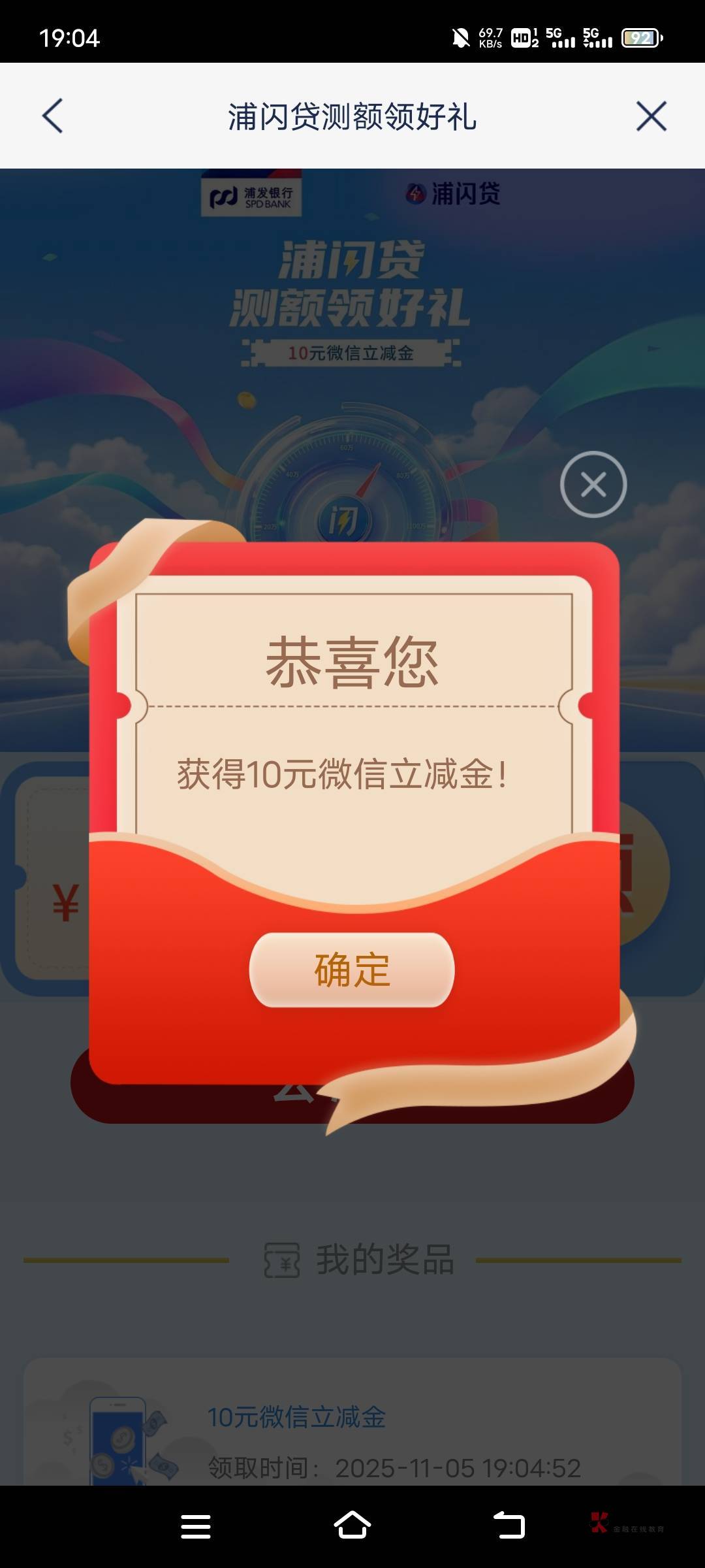 浦发闪贷测10元立减金