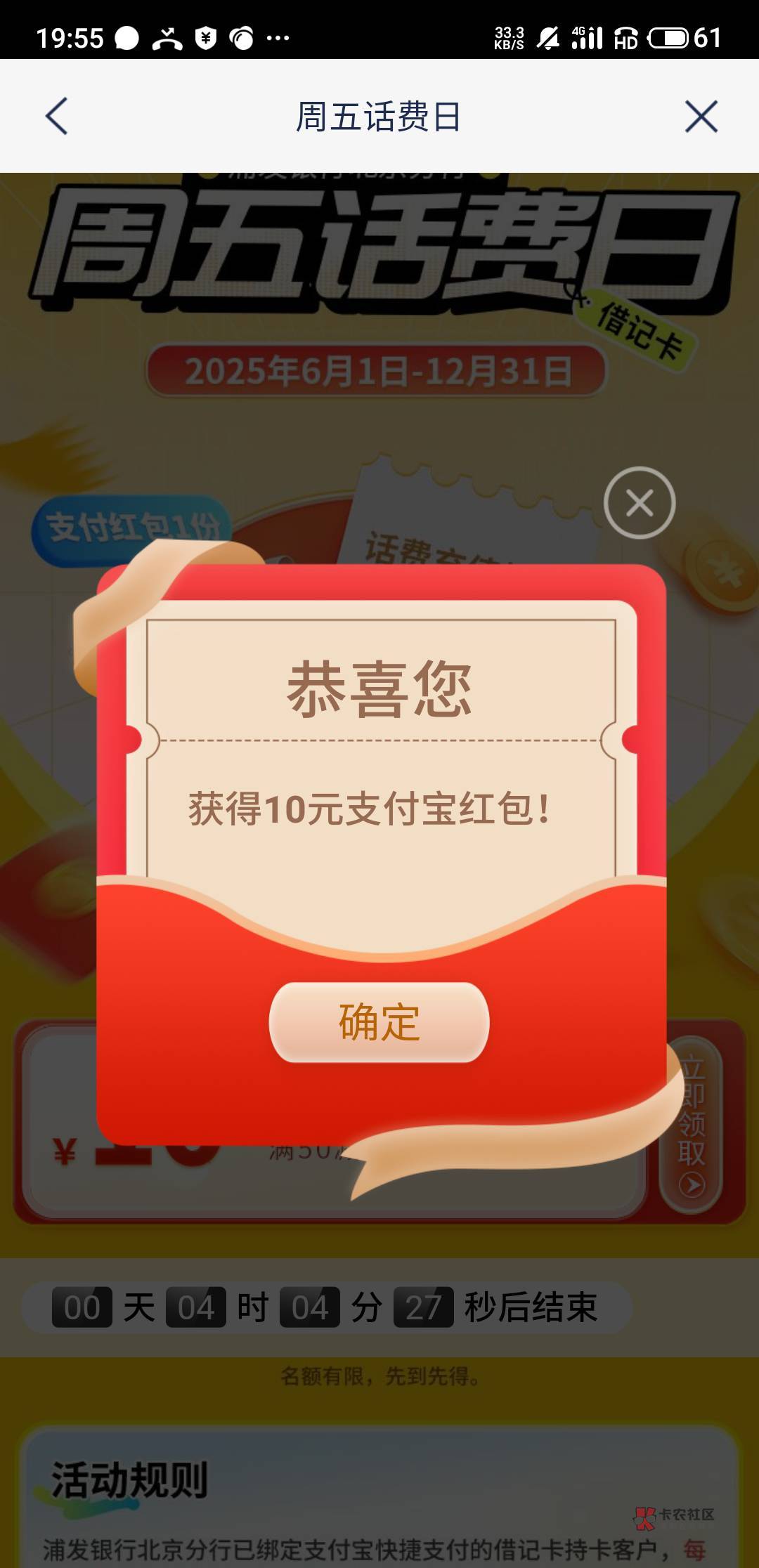 浦发北京,周五话费日,50-10