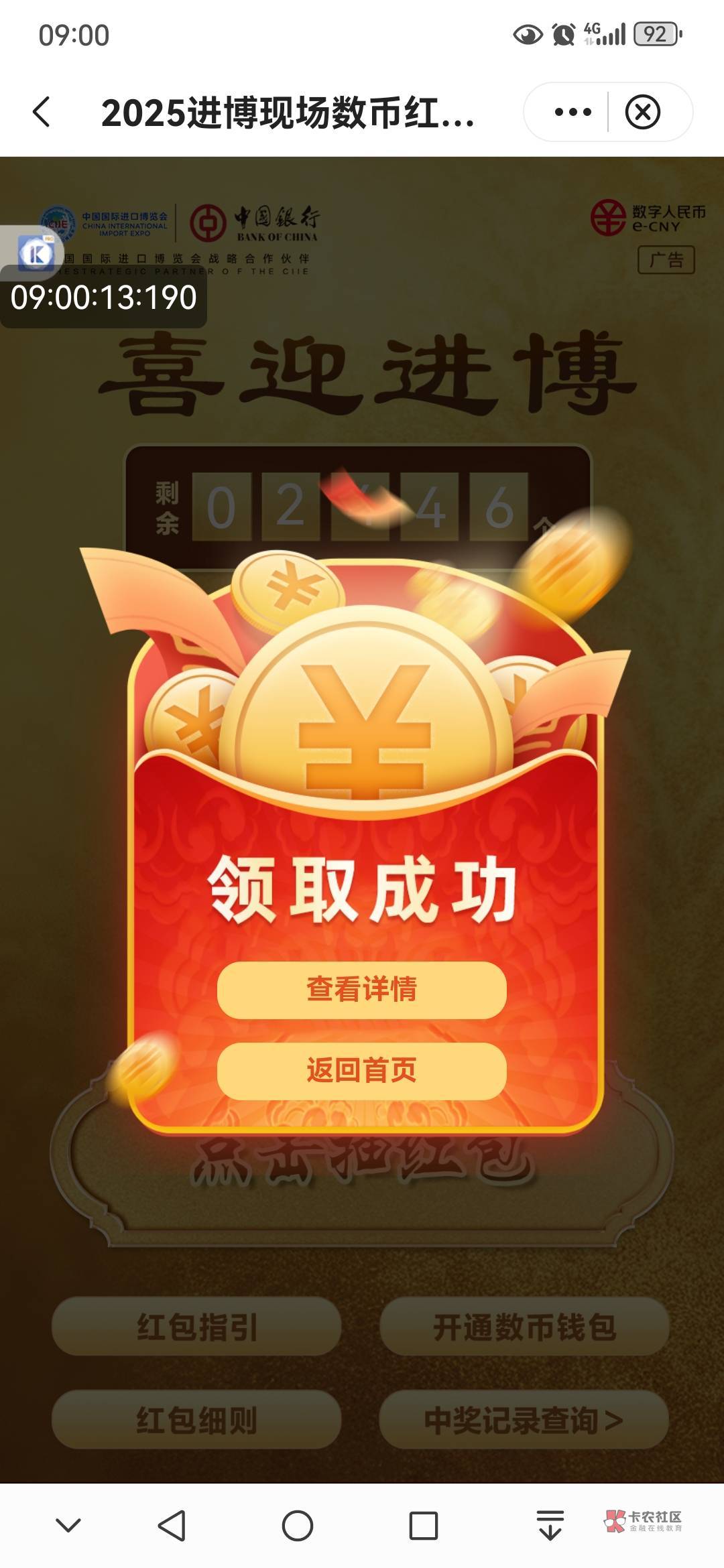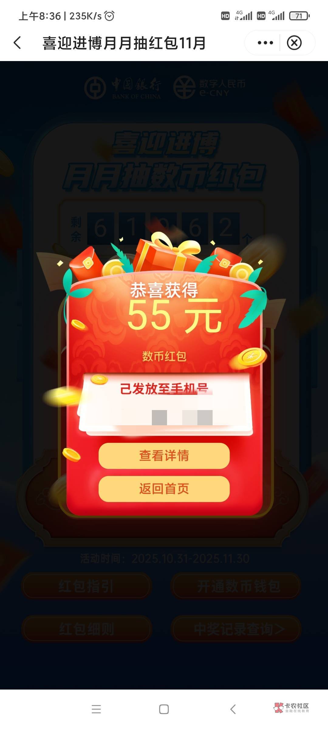 上海中行数币抽奖,刚中55,终于狗运了一次