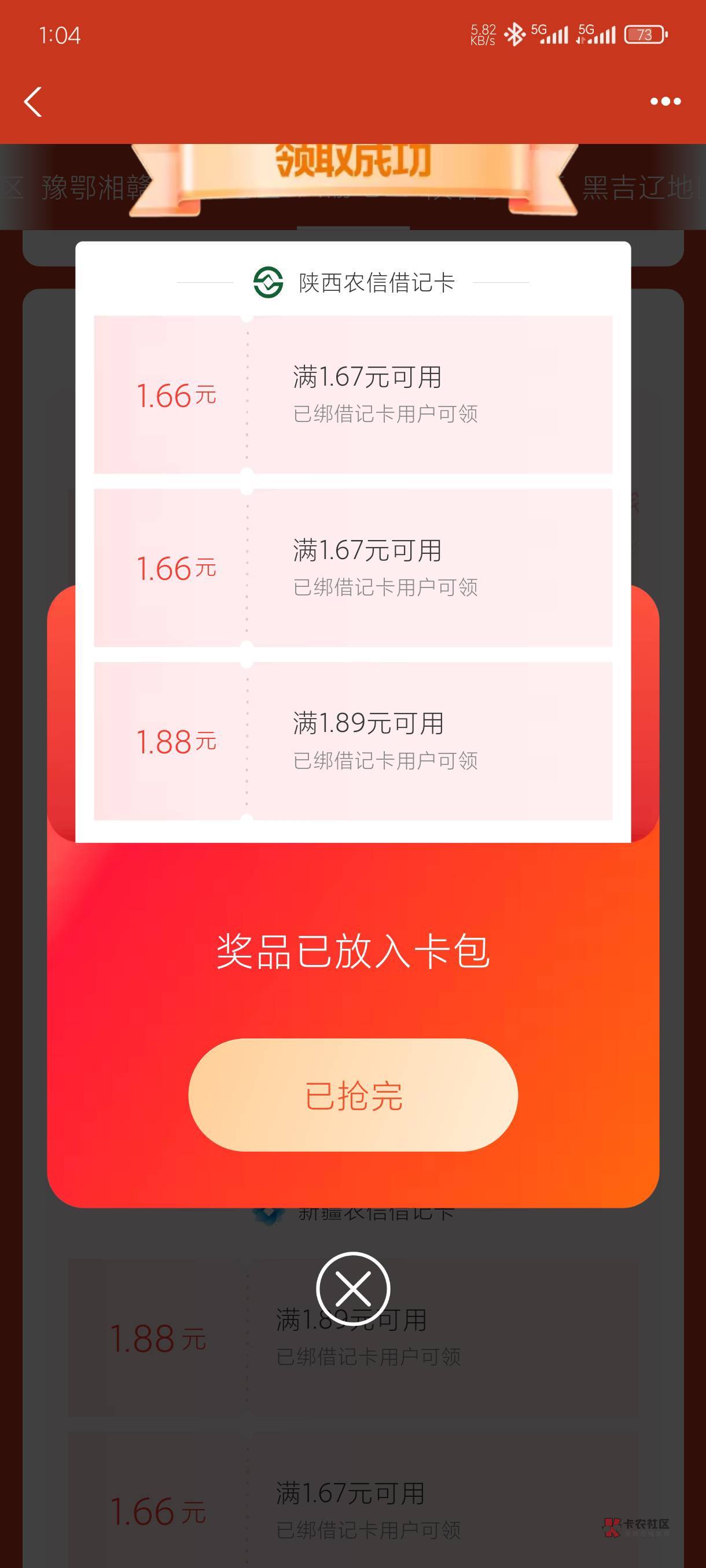 农信日月底领了个陕西信合,刚看又领了!貌似只更新了这一个。