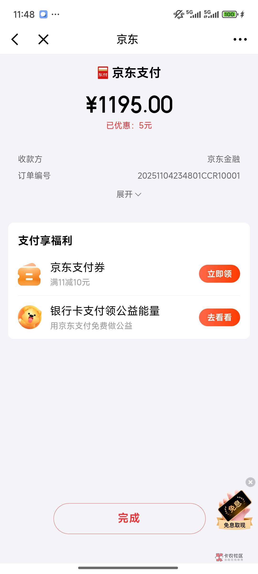 11-4日23:52京东618放水,我刚中5.66元~
