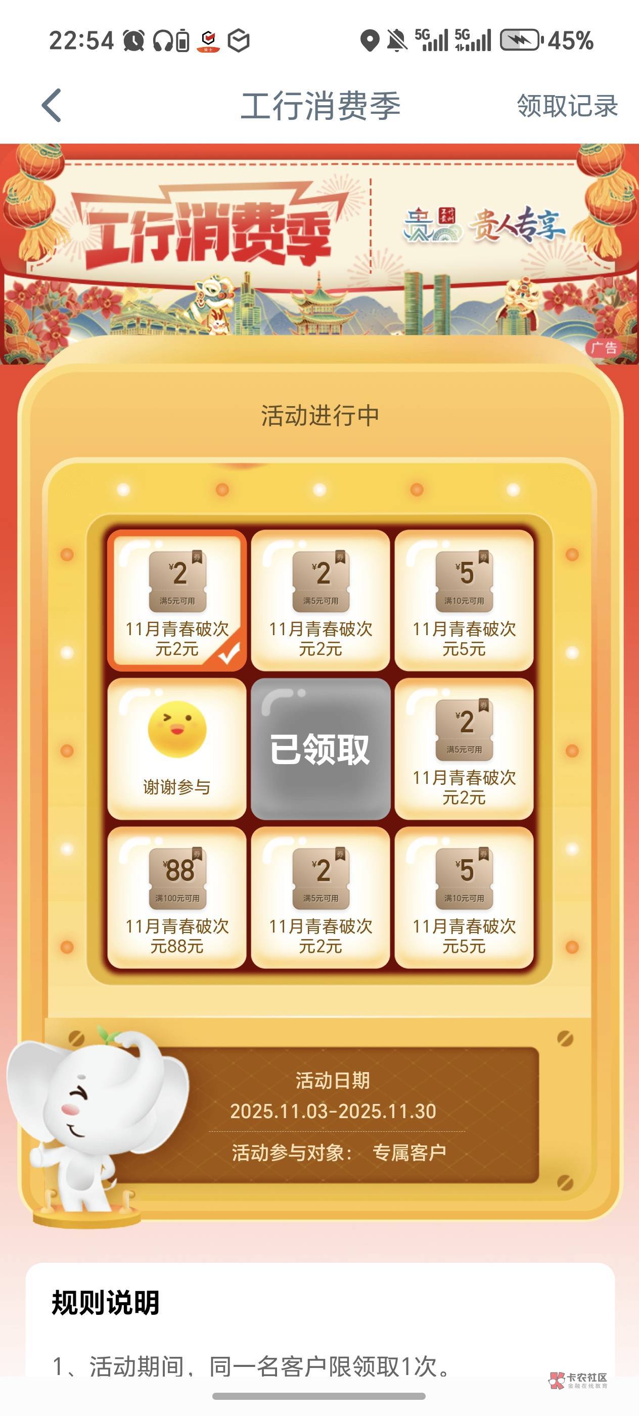 贵州工行消费季 2-2 20到手