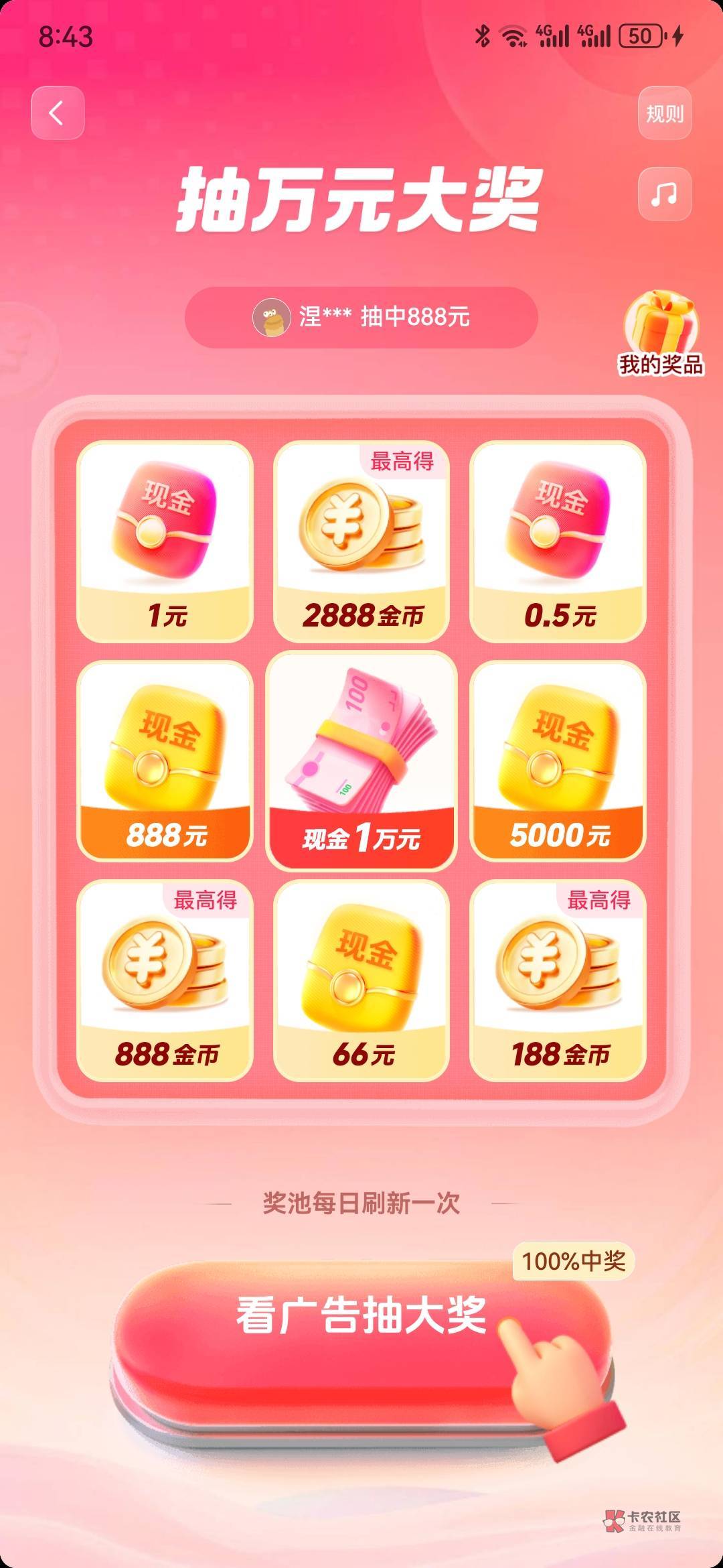 抖音,钱包,抽奖,一等奖一万现金。好运苟们,赶紧去吧。