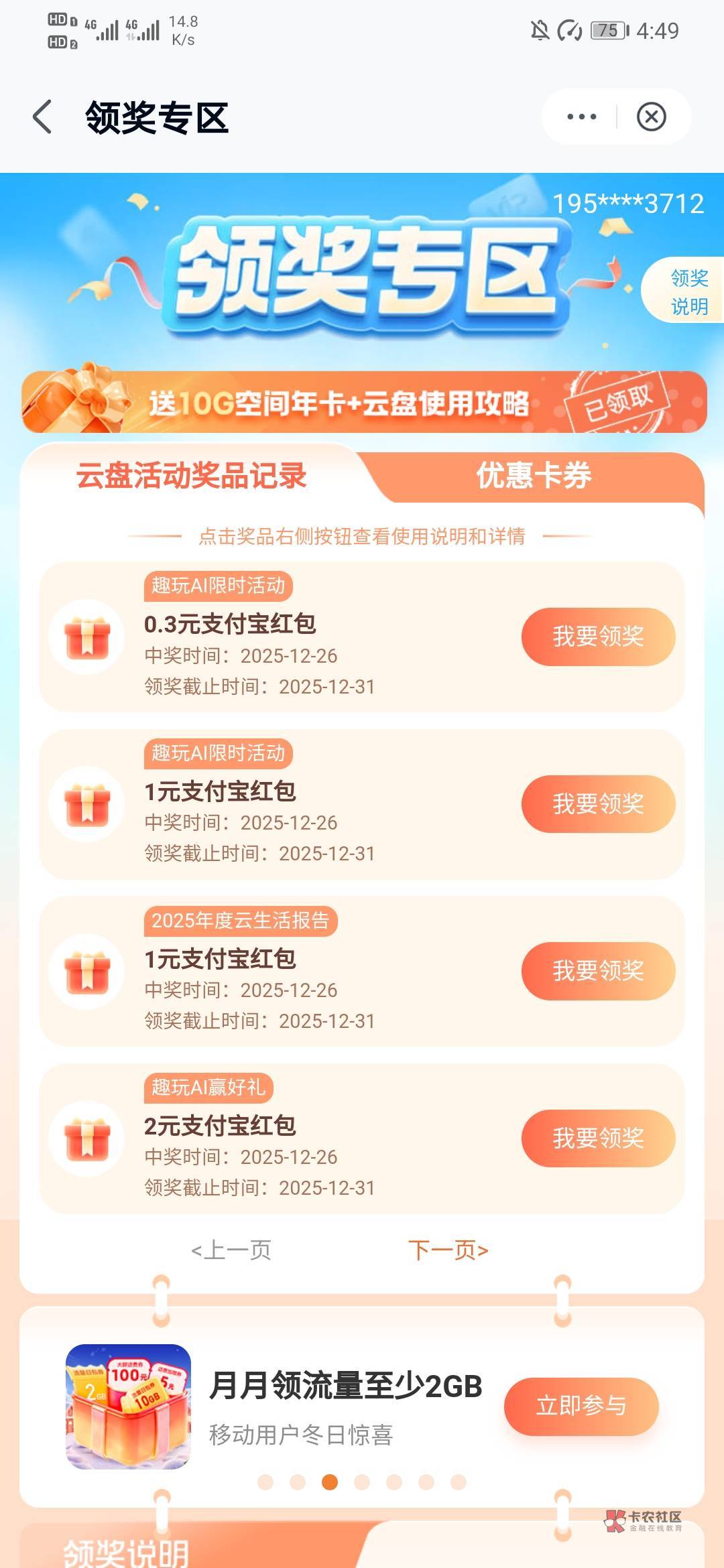 云盘这三个活动中了4.8