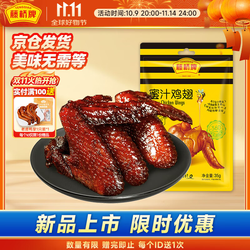 10件全额返 藤桥牌蜜汁鸡翅38g温州特产鸡肉卤味熟食休闲零食小吃