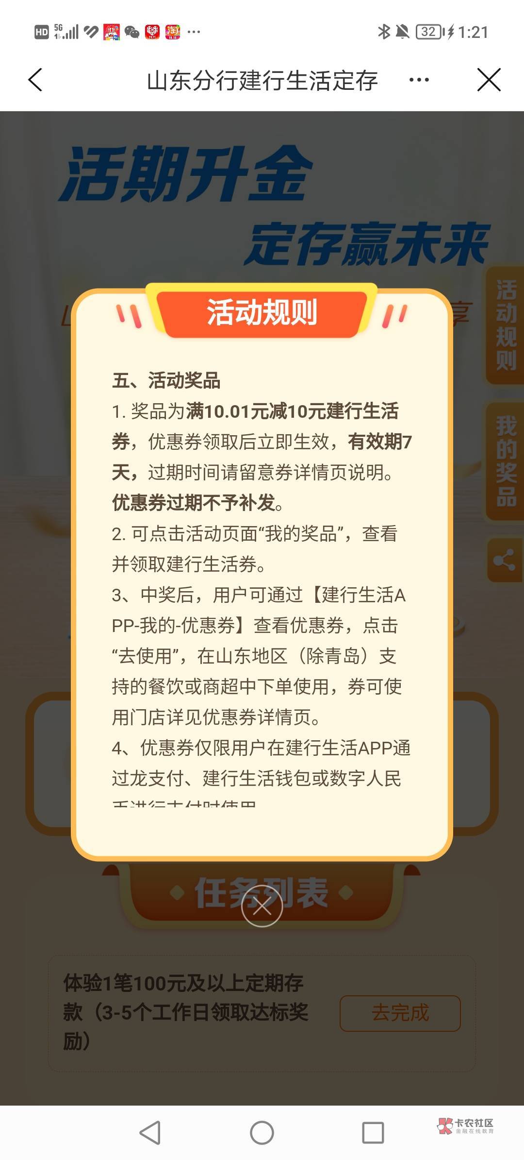 山东建设分行活期升金有礼 10米 需山洞建行卡 建行生活app