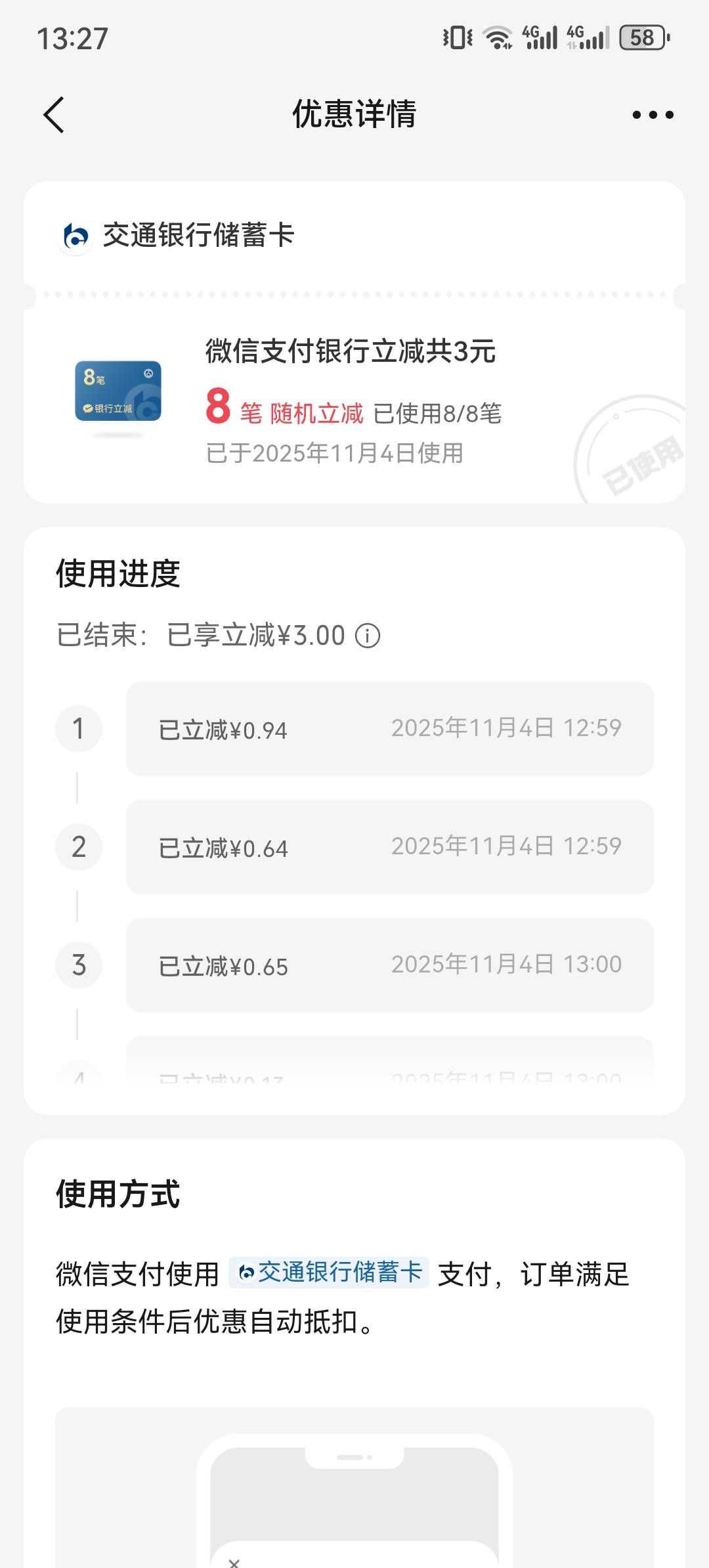 11-4日13:38京东双十一放水,我刚中4.66元~