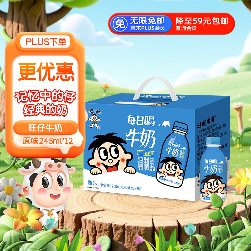 旺旺 旺仔牛奶 每日喝牛奶245ml*12瓶 礼盒装,买3件 18.84/件