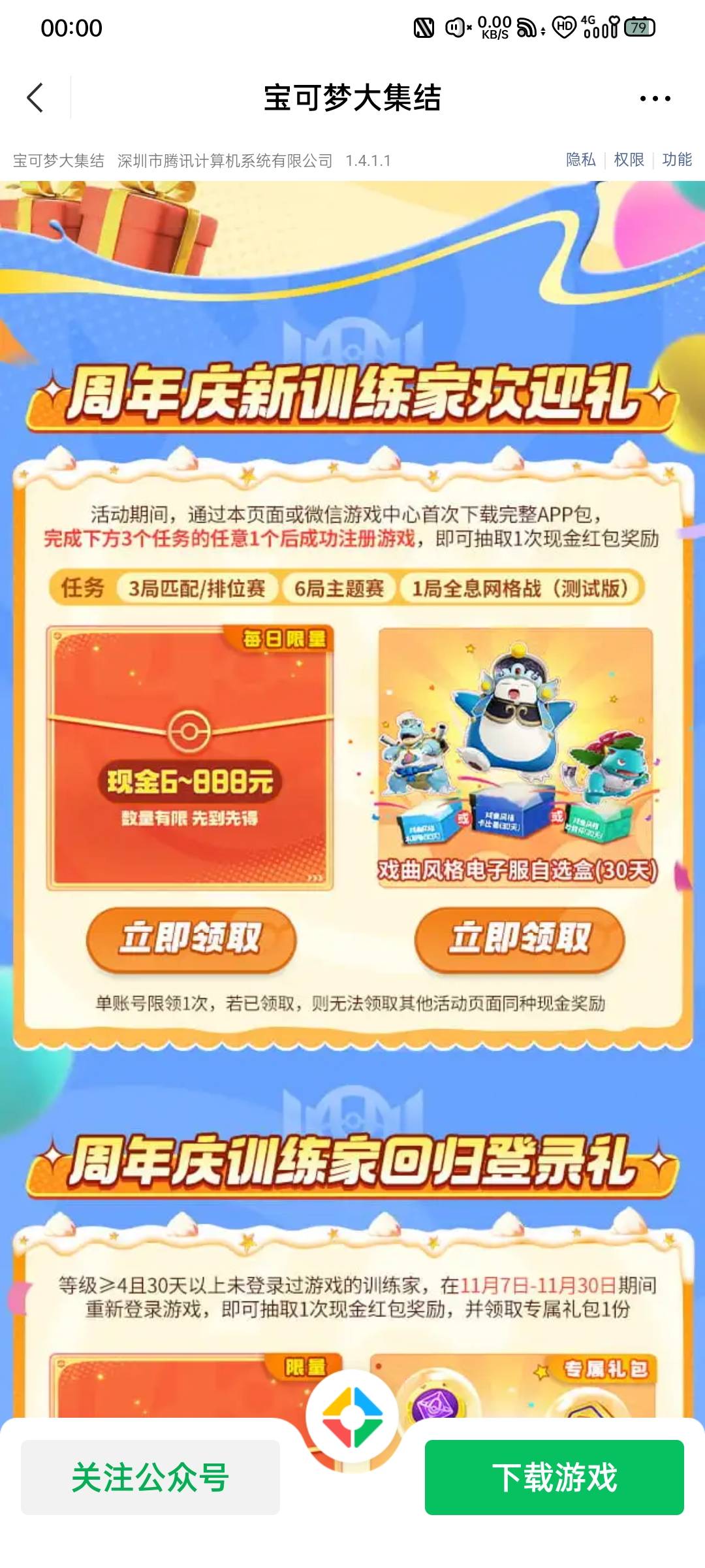 宝可梦还有包,过晚上12点就得抢,过一会就没,我任务完成两天了,今天才抢到。还有回归可以领。注册的10毛早没了