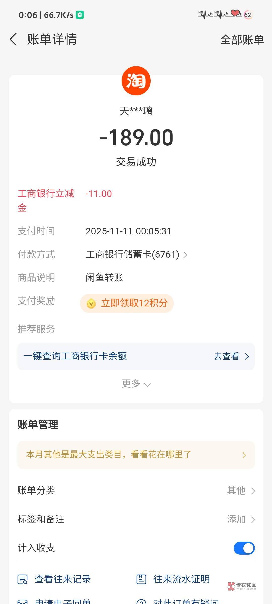 11-11日00:08京东双十一放水,我刚中4.66元~