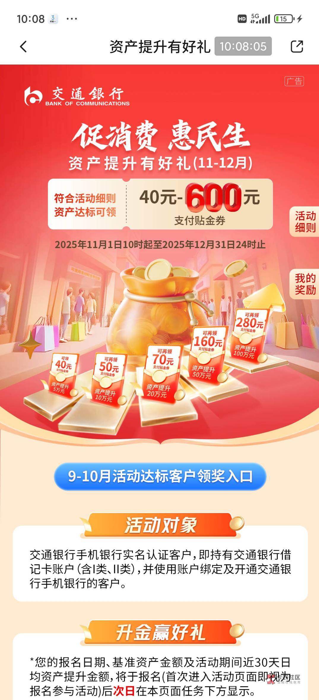 交行App首页,资产提升有好礼,有钱老哥可以去