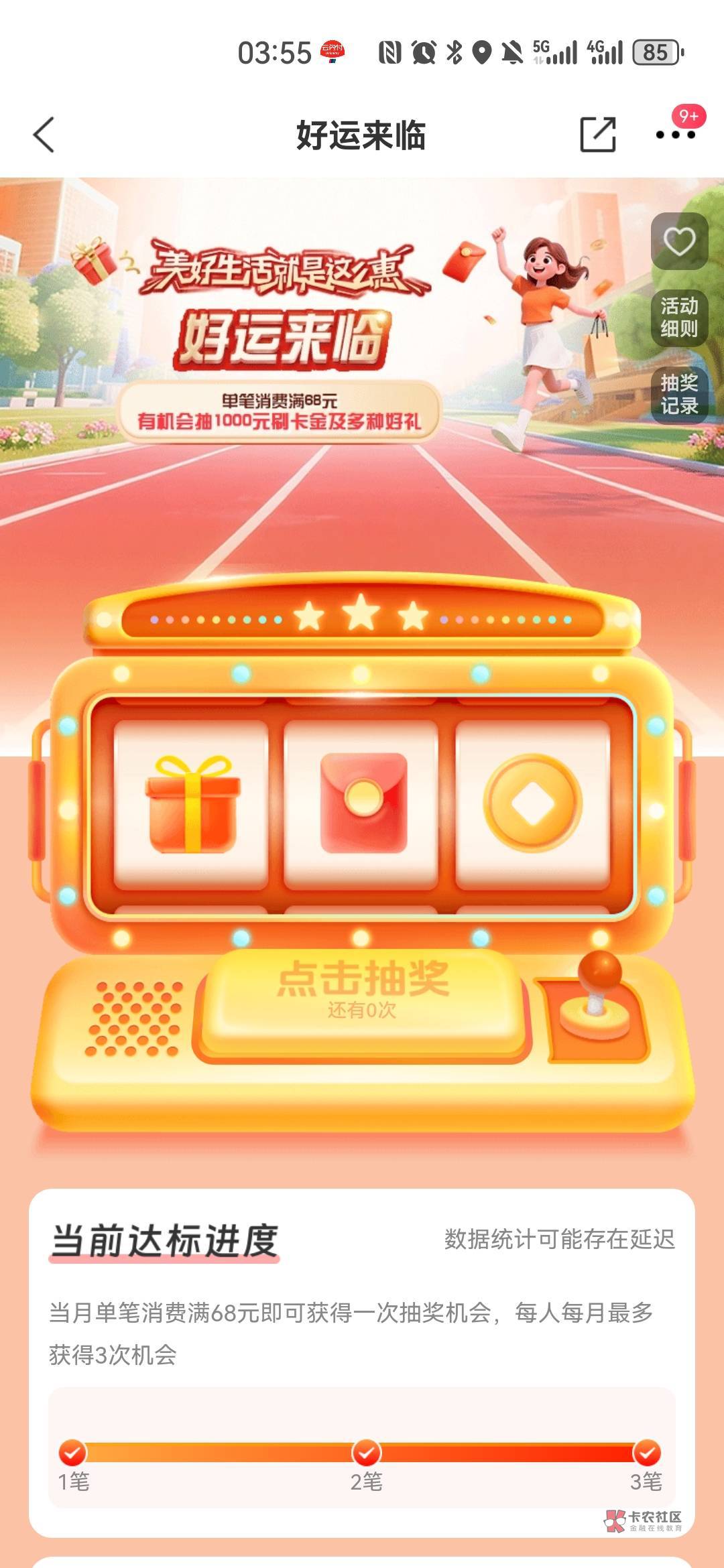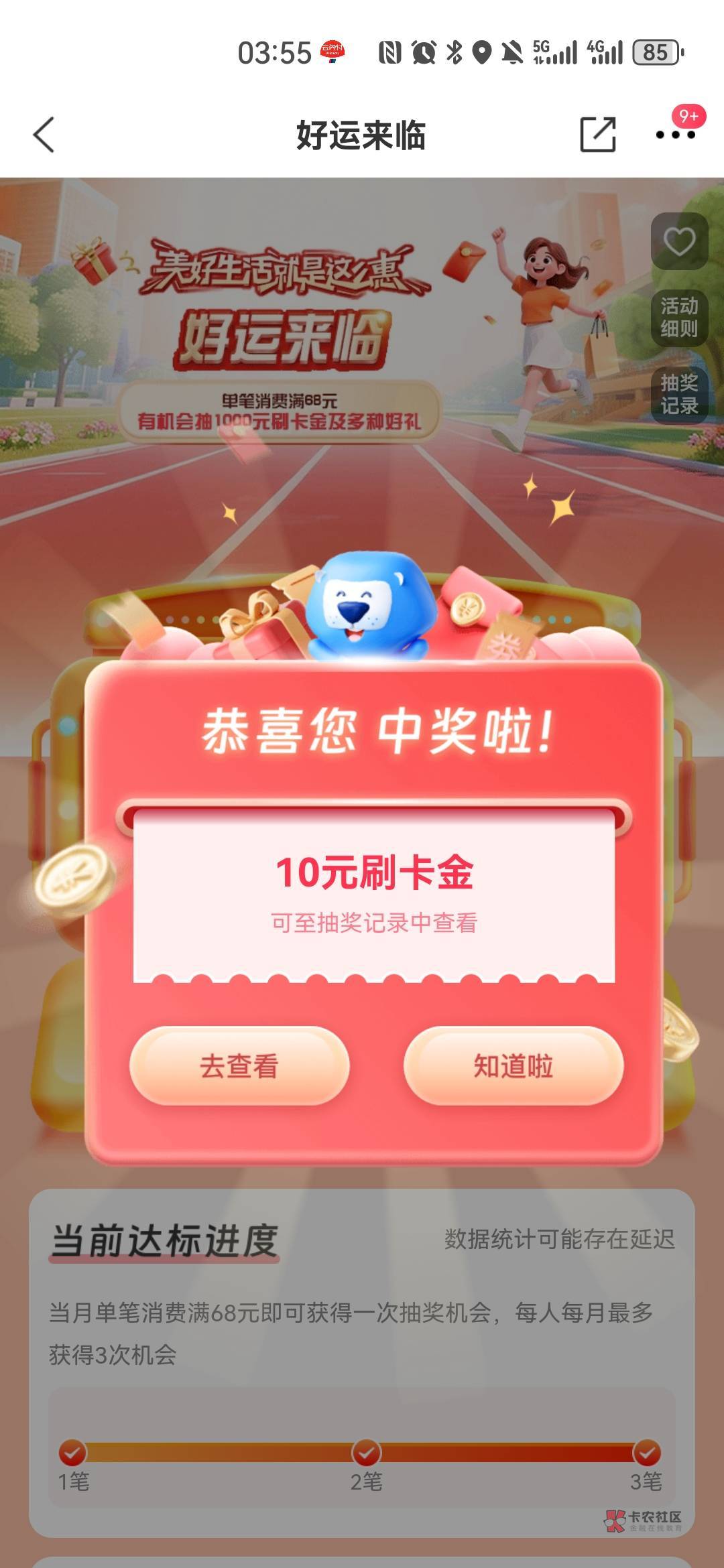 买单吧,交通信用卡刷3笔抽奖,云闪付扫自己微信经营码就能完成