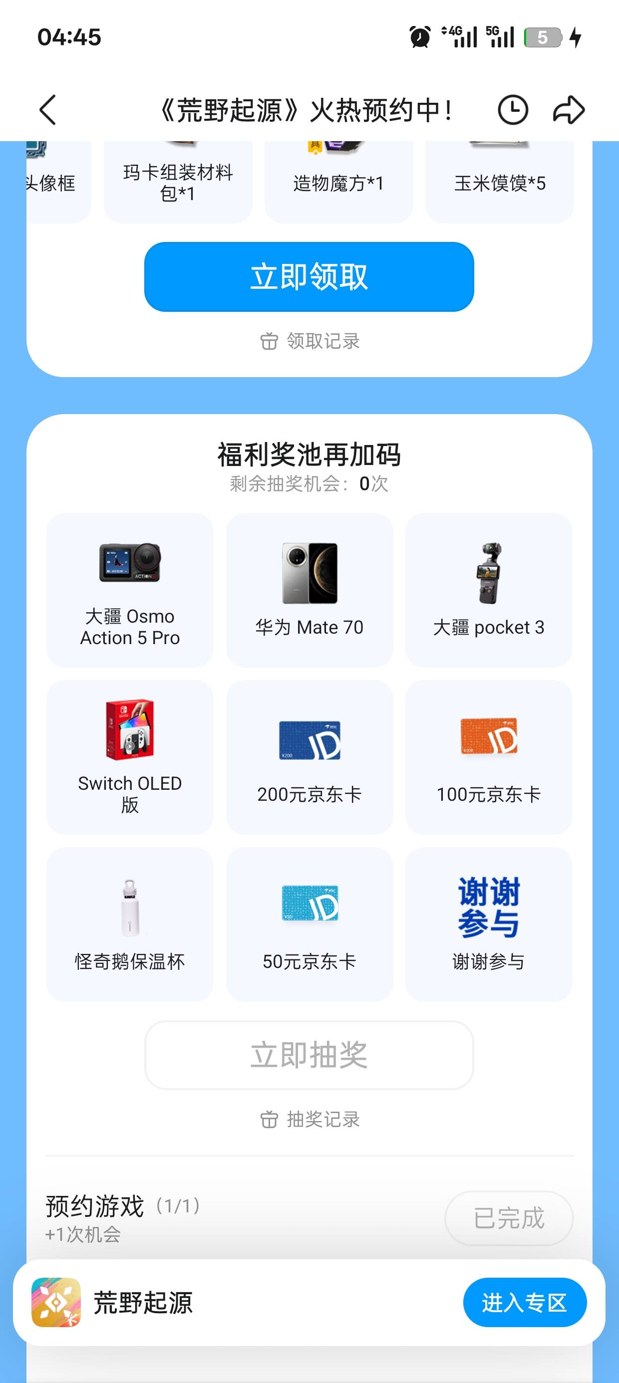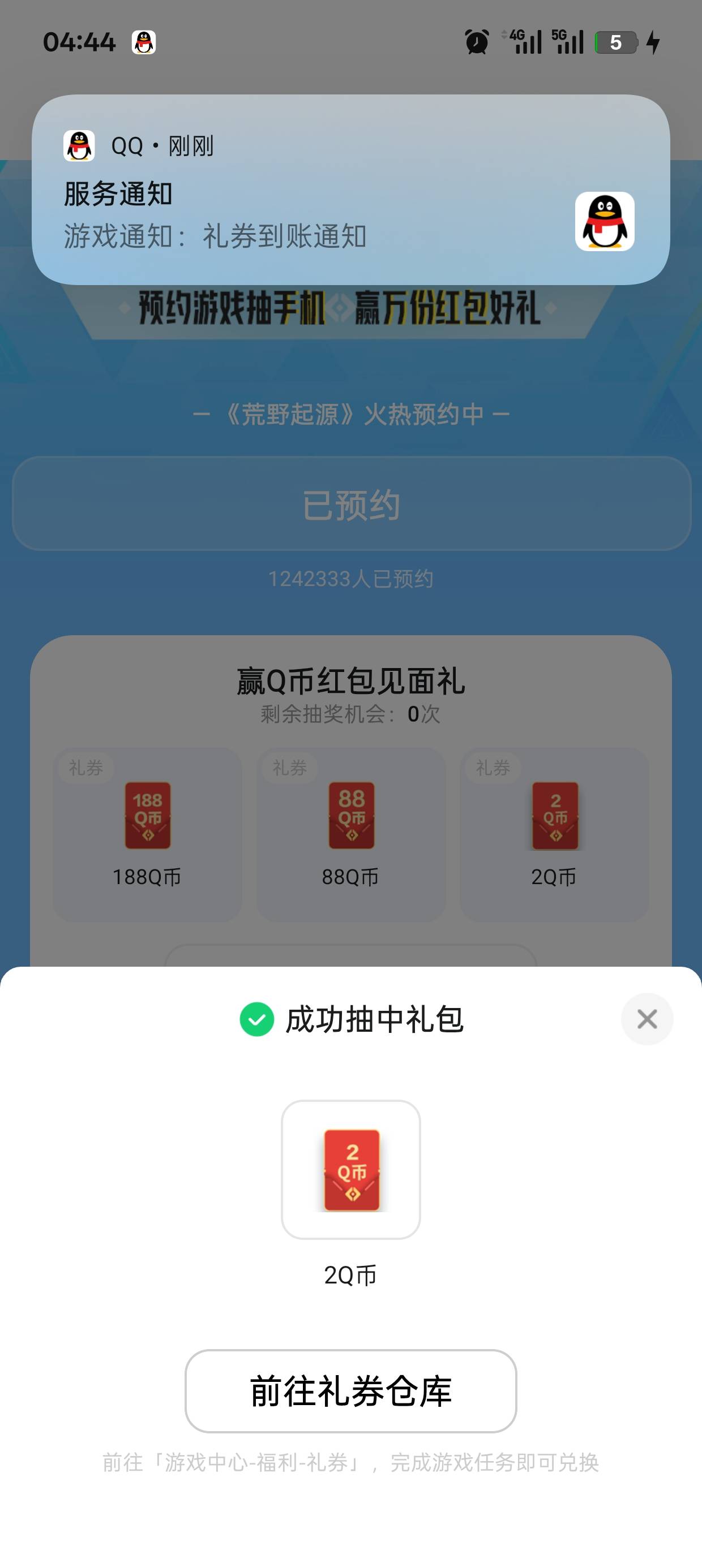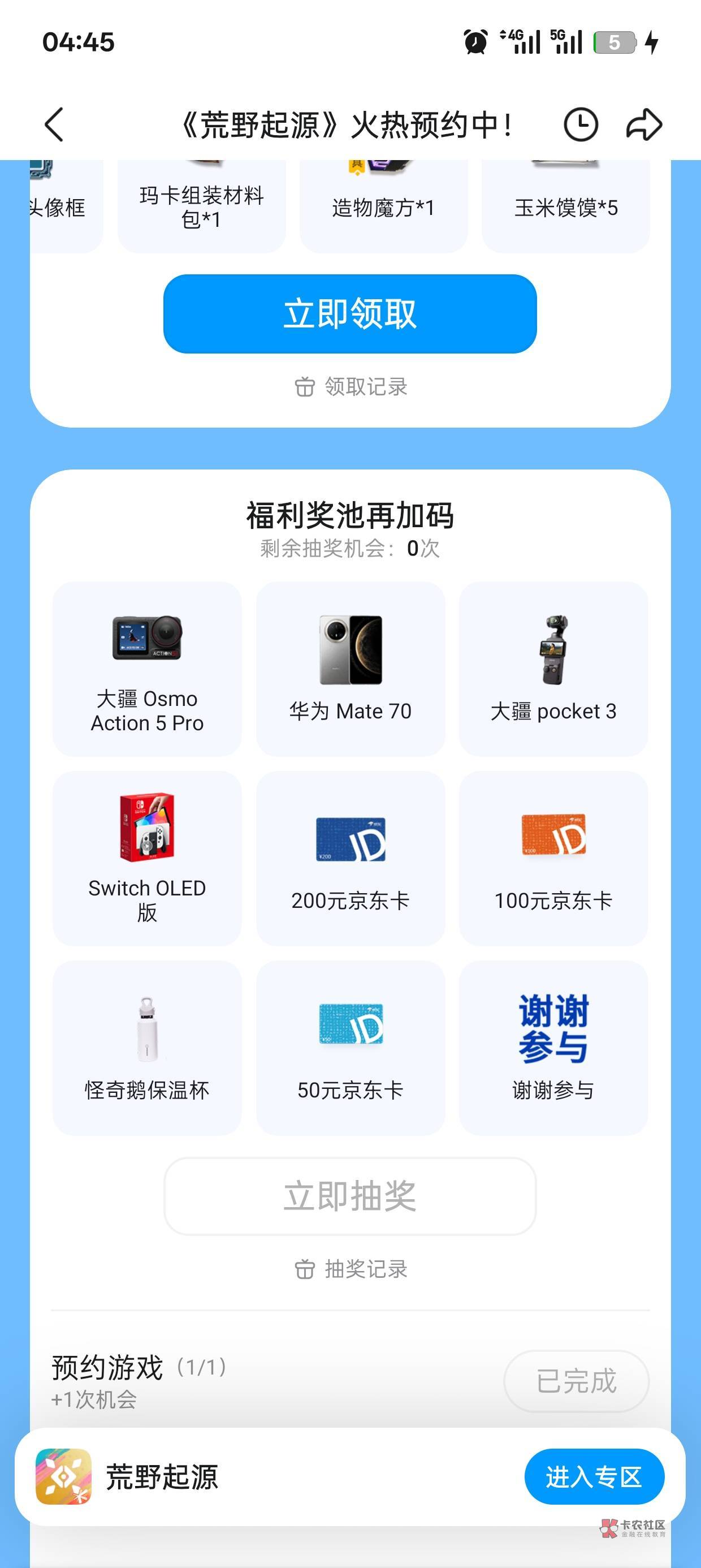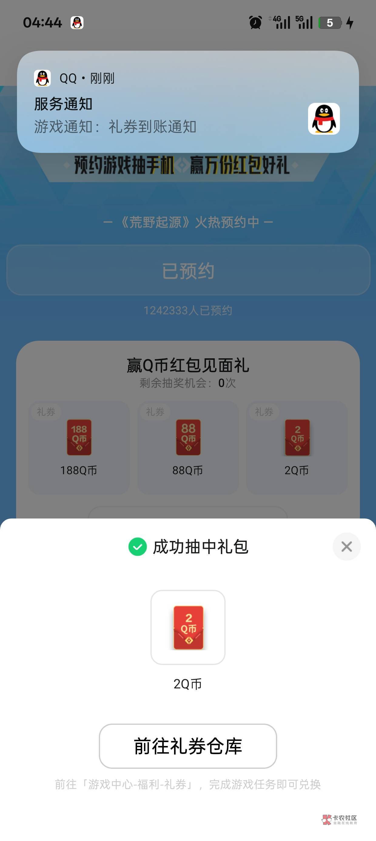 扣扣预约游戏保底2扣币,还可以抽e卡可能没水了,一个不中