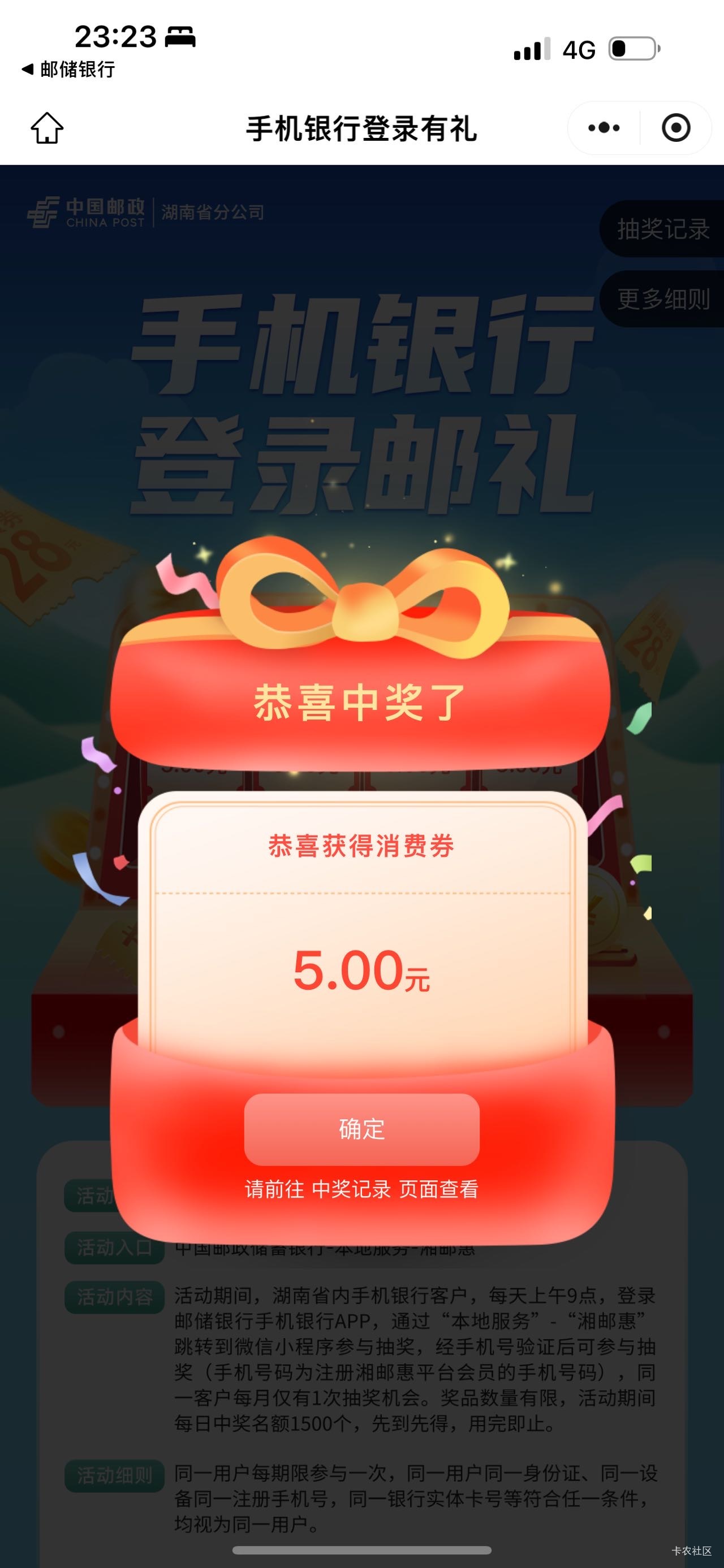 湘邮汇小程序抽奖要从邮储银行打开??邮储银行本地服务 切换长沙 点湘邮汇 跳转小程序弹窗抽奖 限湖南卡用 我湖北卡也能用不清楚为啥