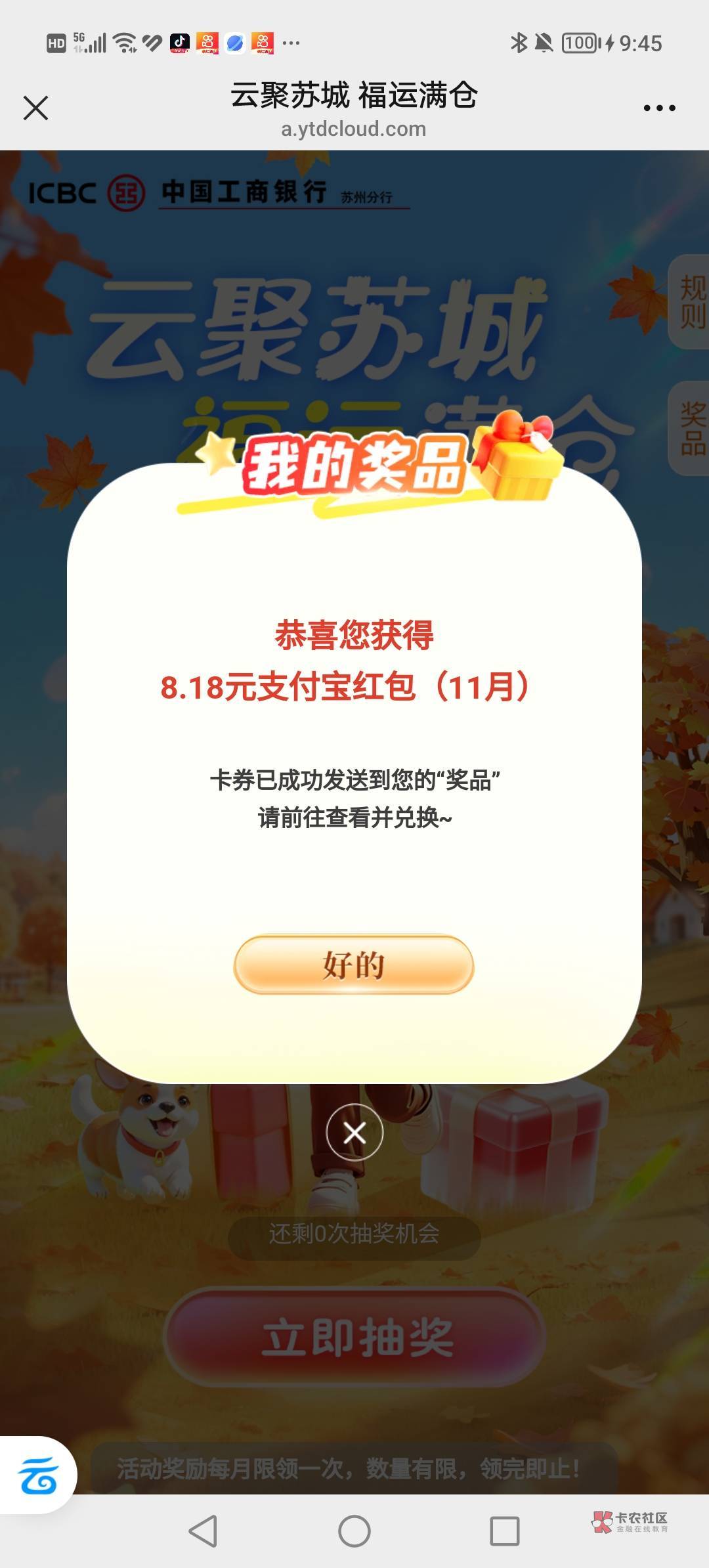 #小程序://工行服务/4Rchks8dYEVDpjh 工行8 zfb羊毛,显示限制苏州可用,实测外省无