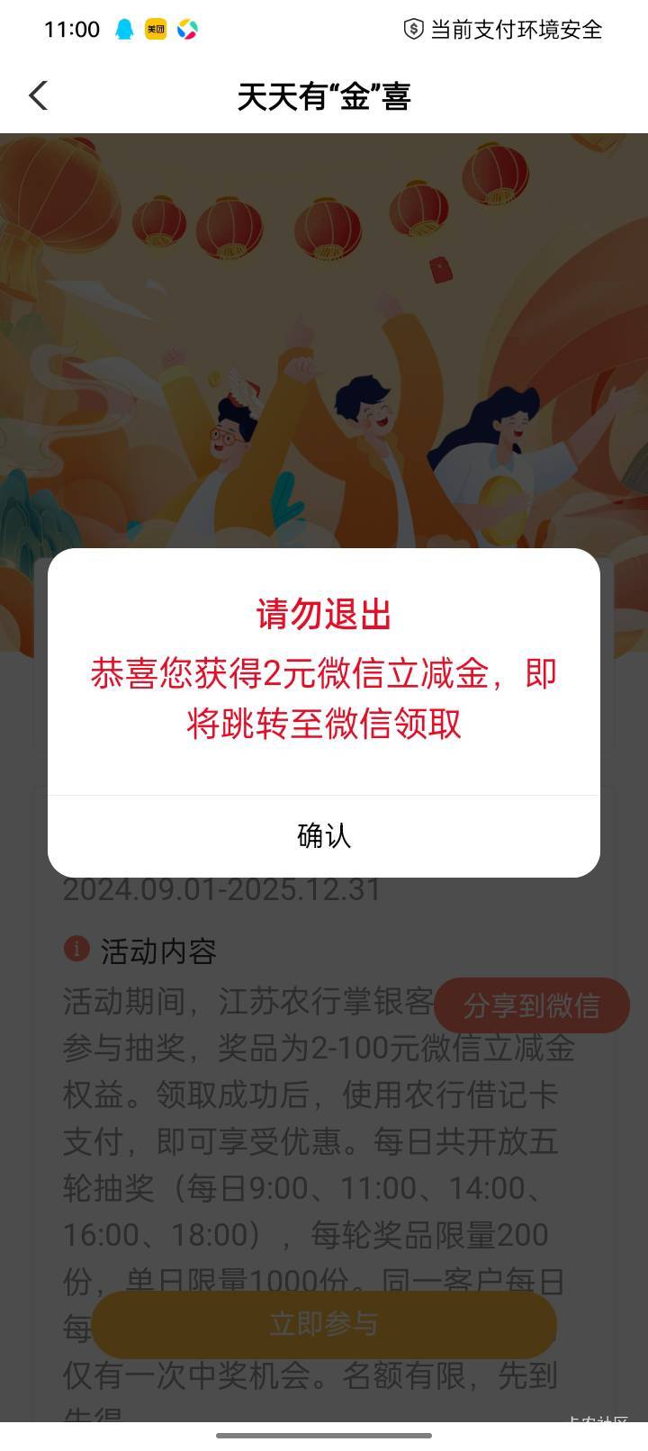 江苏农行.天天有‘金’喜.抽奖活动详情:微信立减金等你抽