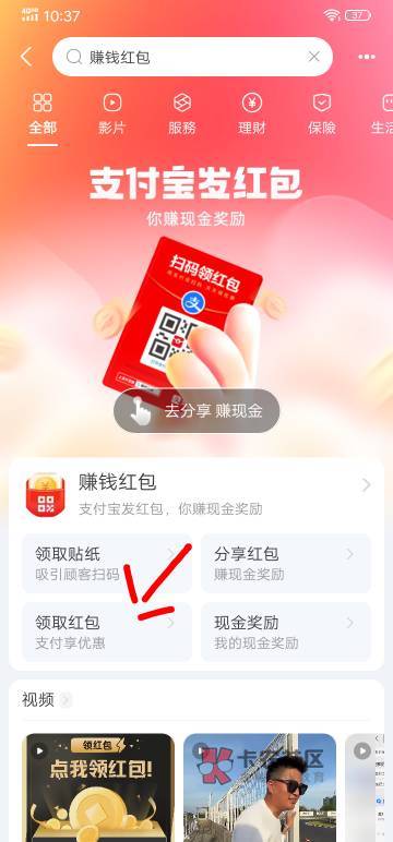 zfb搜索赚钱红包如图点进去 部分有大额红包,去试试运气