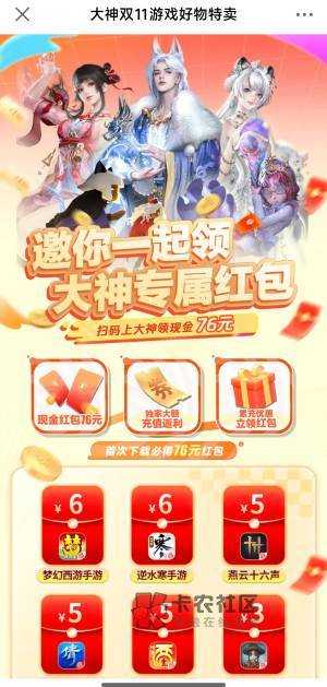 网易大神首页搜:大神双十一,进入活动下载游戏毛,76毛红包60工作日到账,第一个梦幻