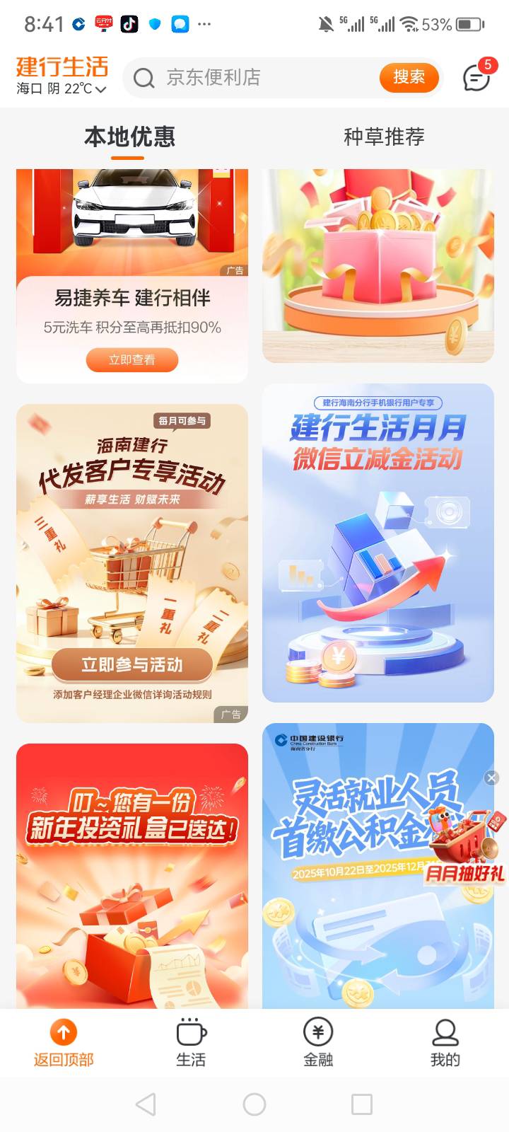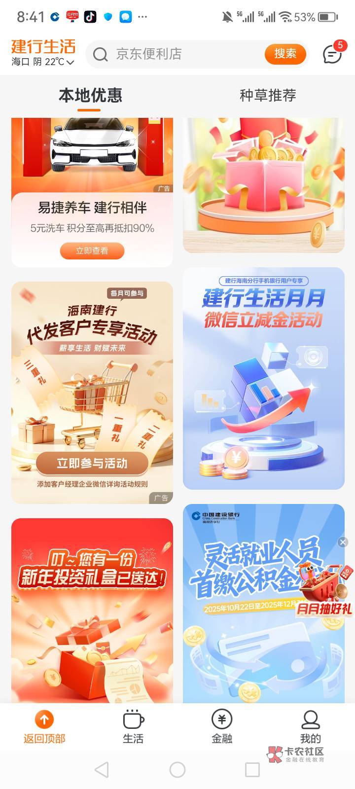 建行生活,海南建行月月抽,需要飞,有卡的走起