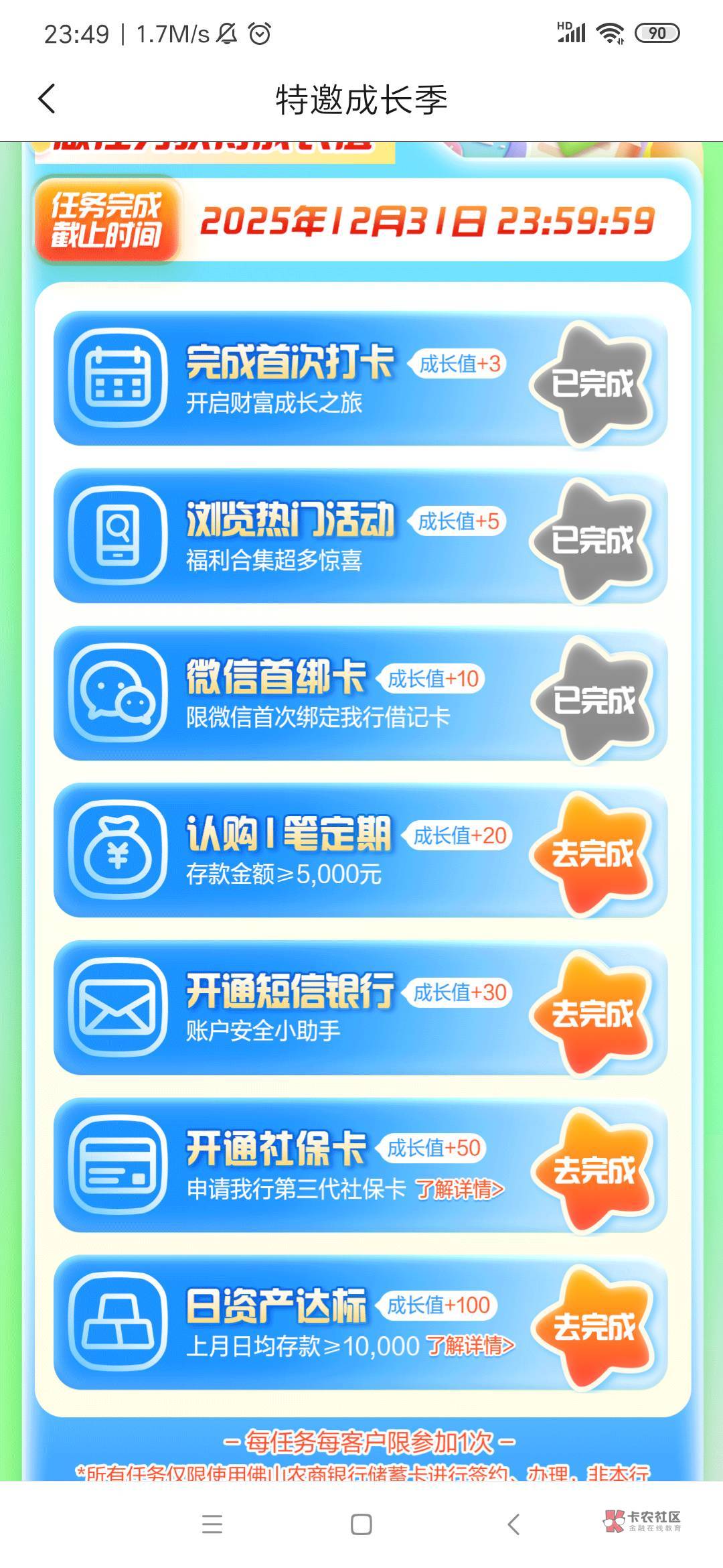 佛山农商银行特邀成长活动 有卡有能力的去吧 我限额1000就不做了 连个5毛都换不到