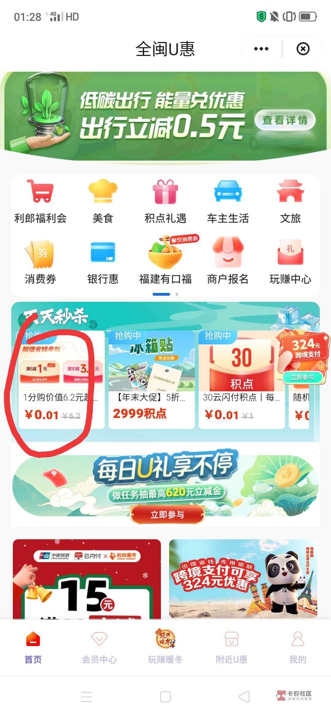 云闪付福建地区(厦门除外),全闽优惠,0.01购6.2券包,3 ...