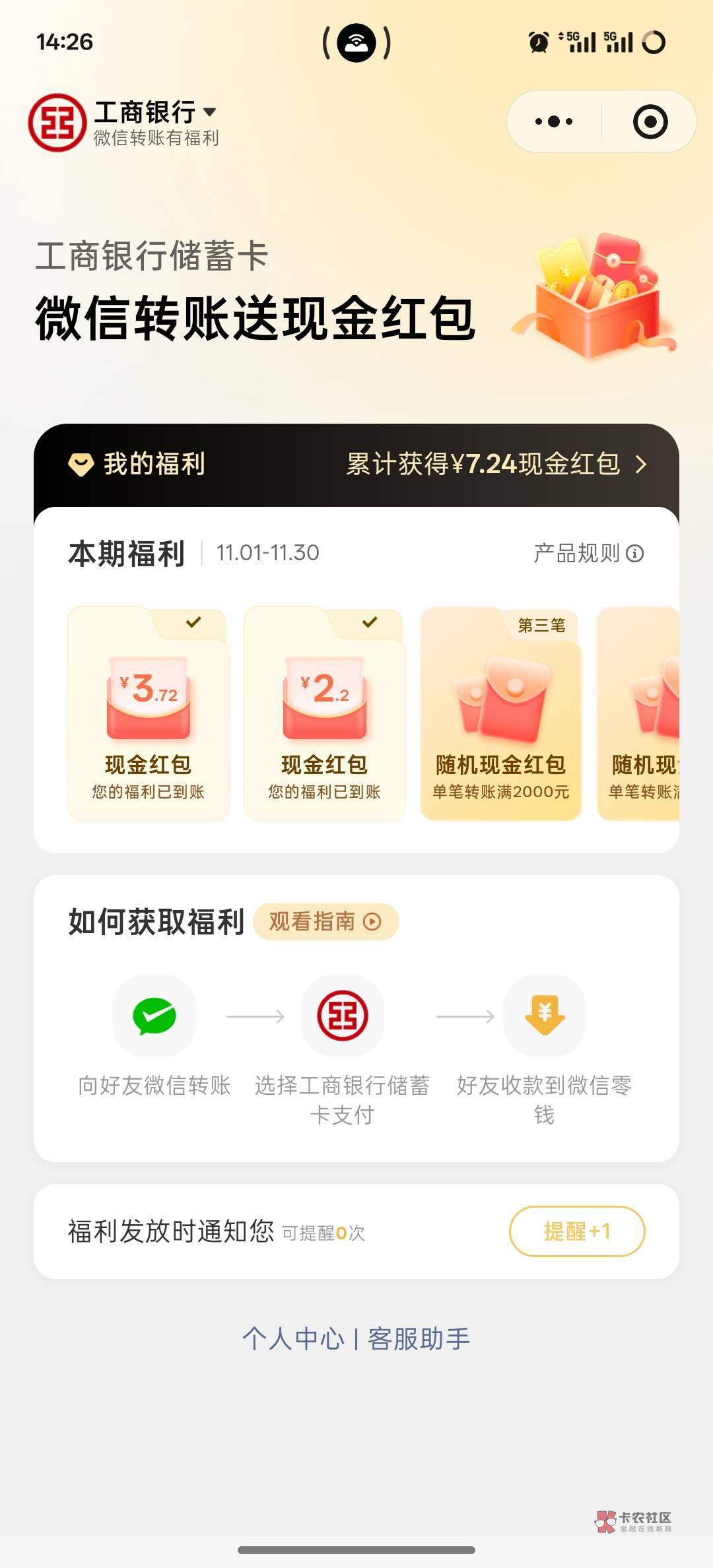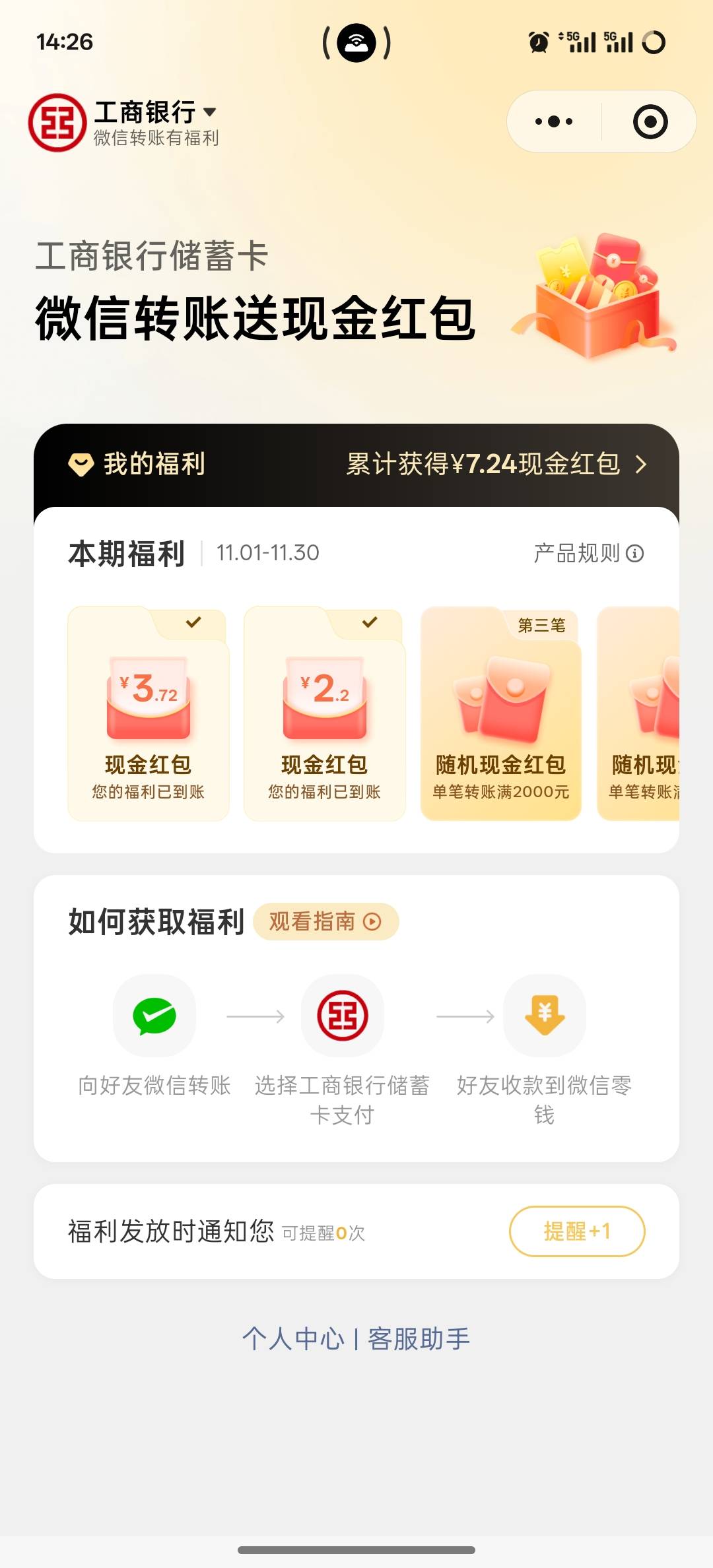 湖北工行微信转账有福利,有免费额度的可以玩玩,没有就算了