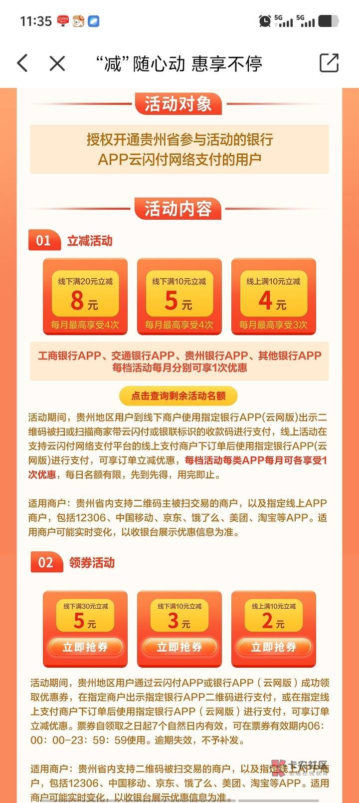 贵州云网线下4次20-8,4次10-5,直接度小满收款就行 线上3次10-4,直接京东买10e卡就