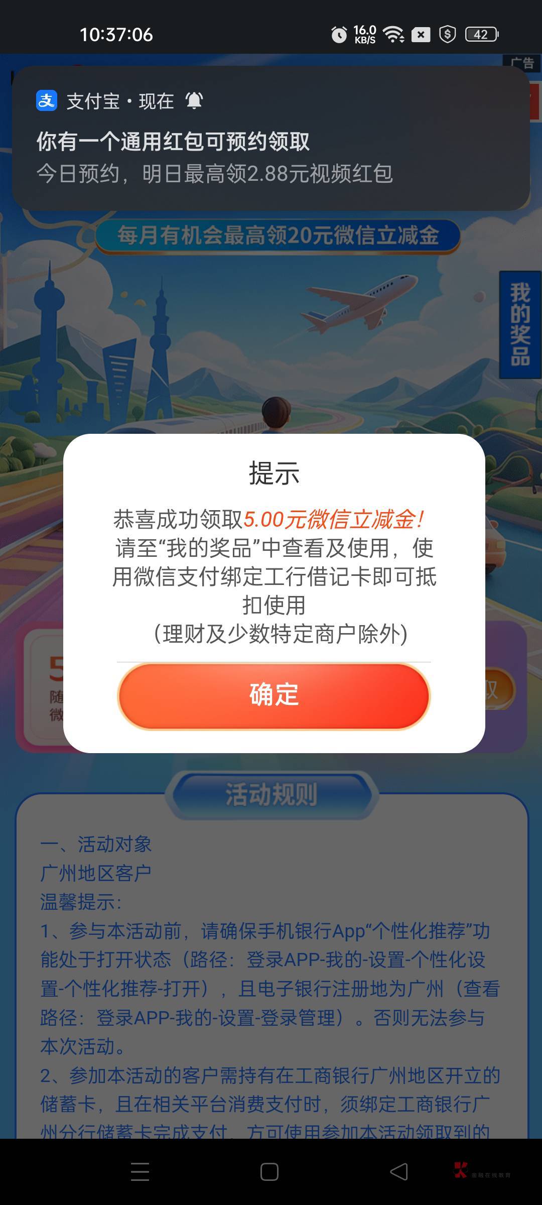 工行V.x端账户查询任务凌晨不出的有了,看起来必中1立减金