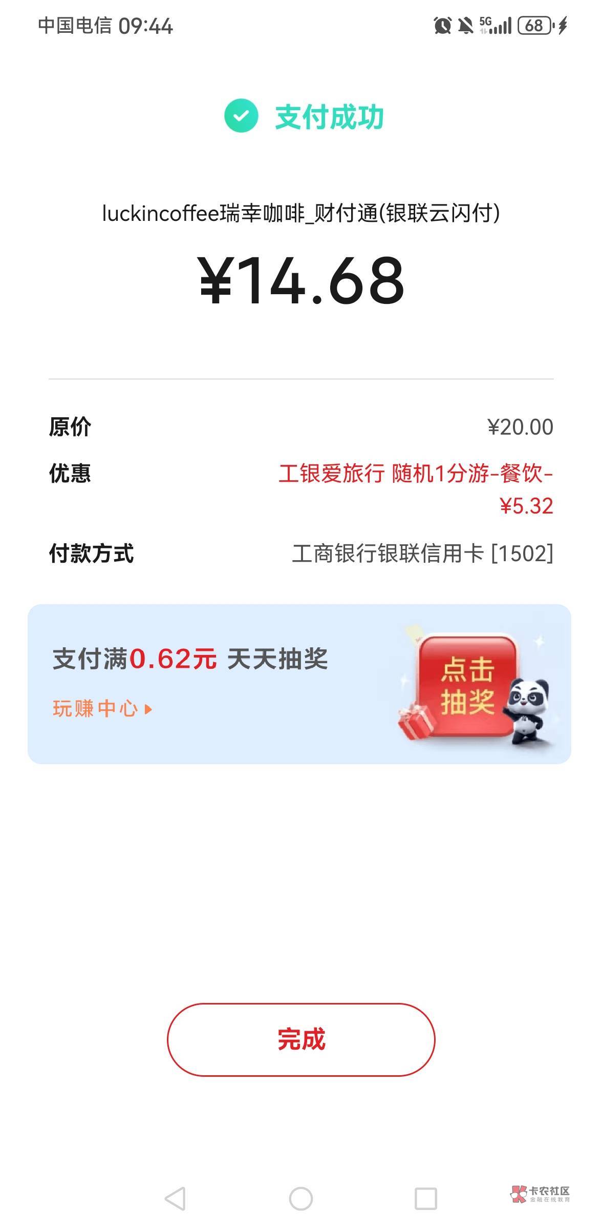 工行xyk去微信小程序买瑞幸礼品卡云闪付优惠