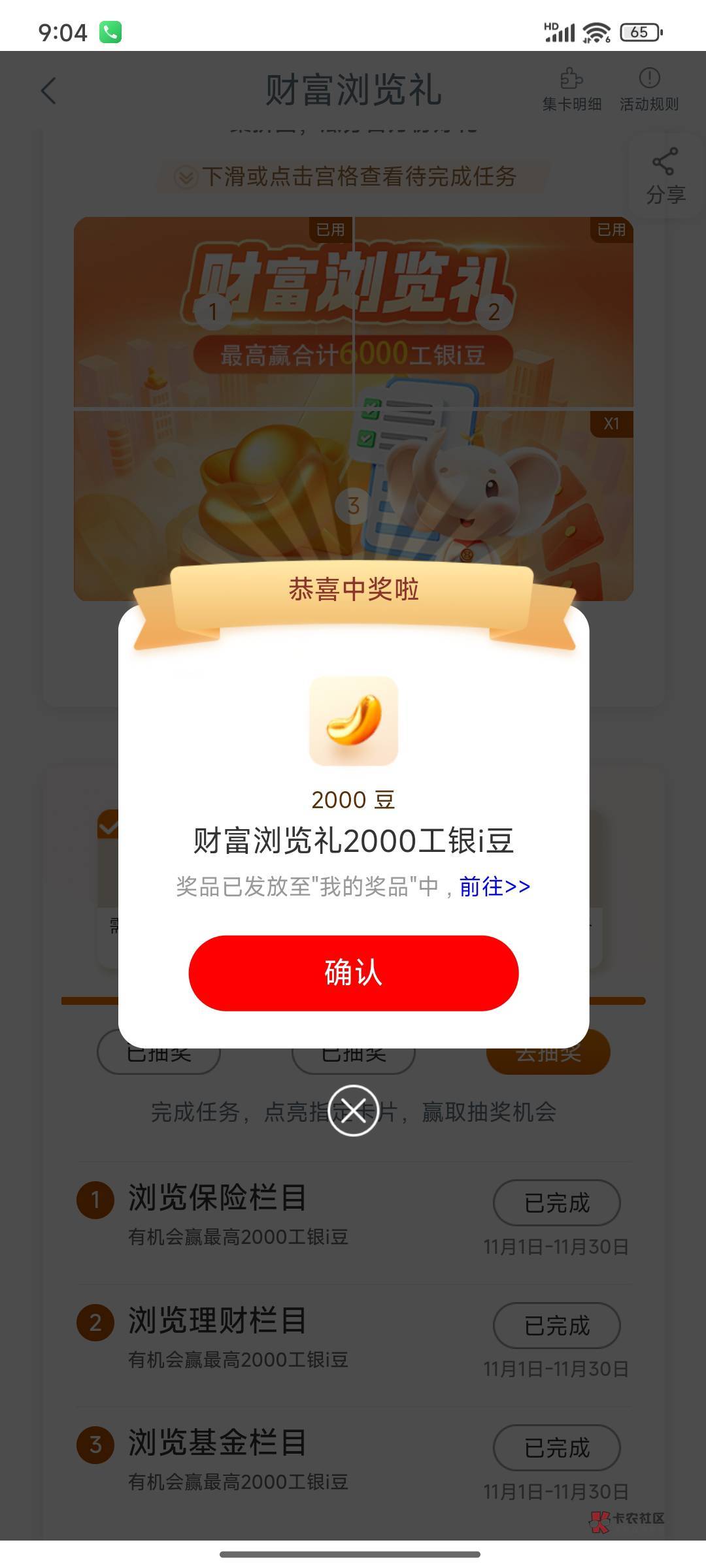 财富浏览礼中了6000豆,存款浏览礼2000豆。