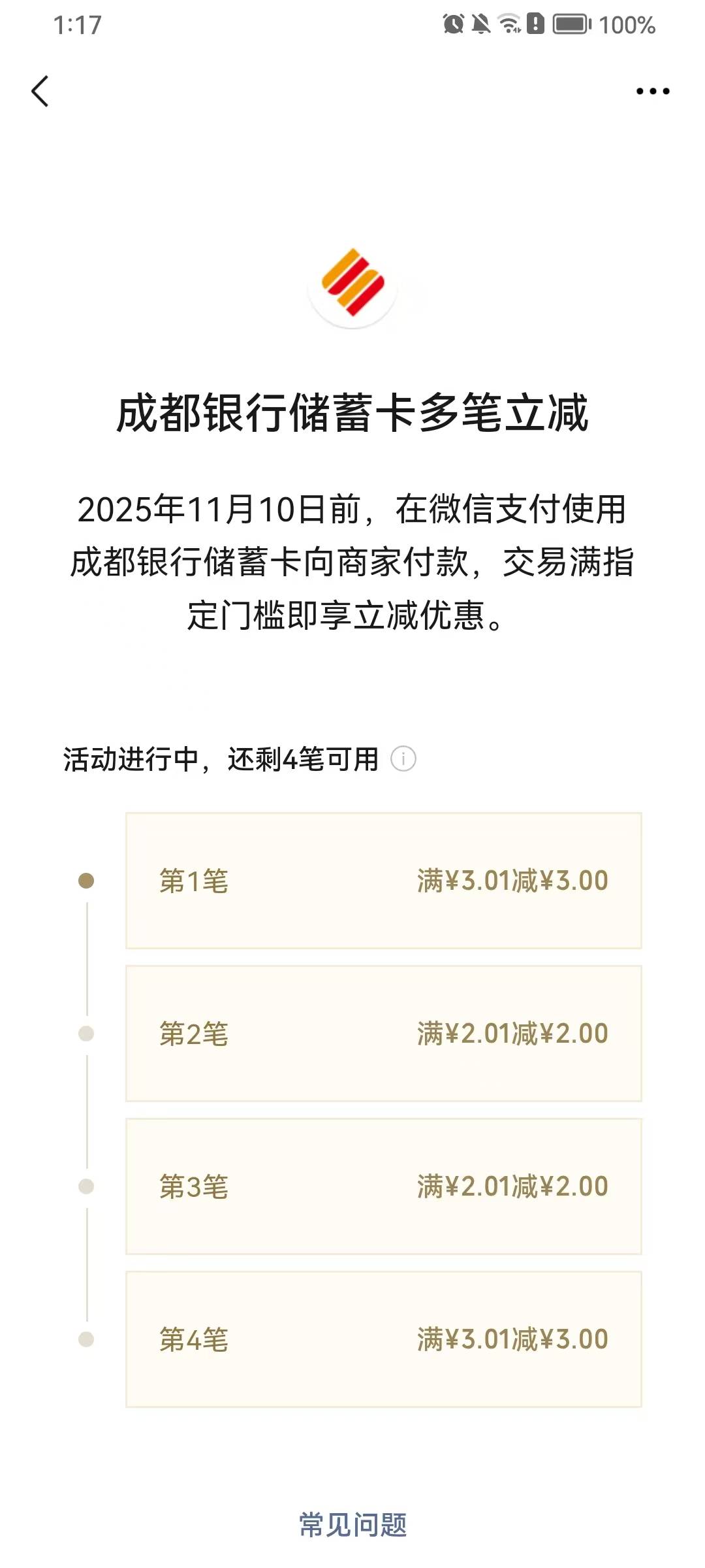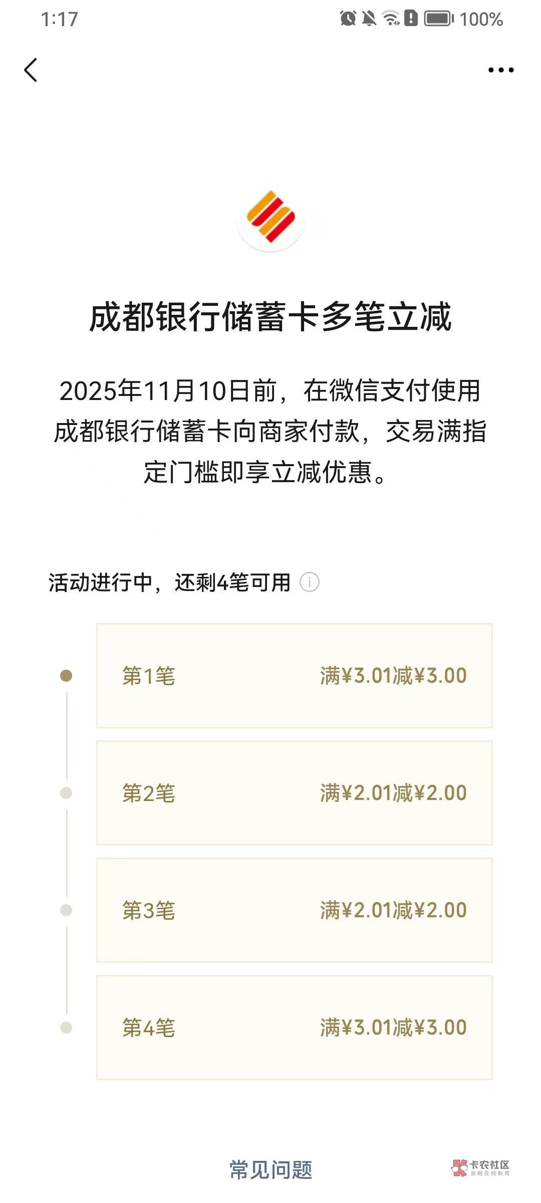 成都银行多笔立减+徽商银行多笔立减活动