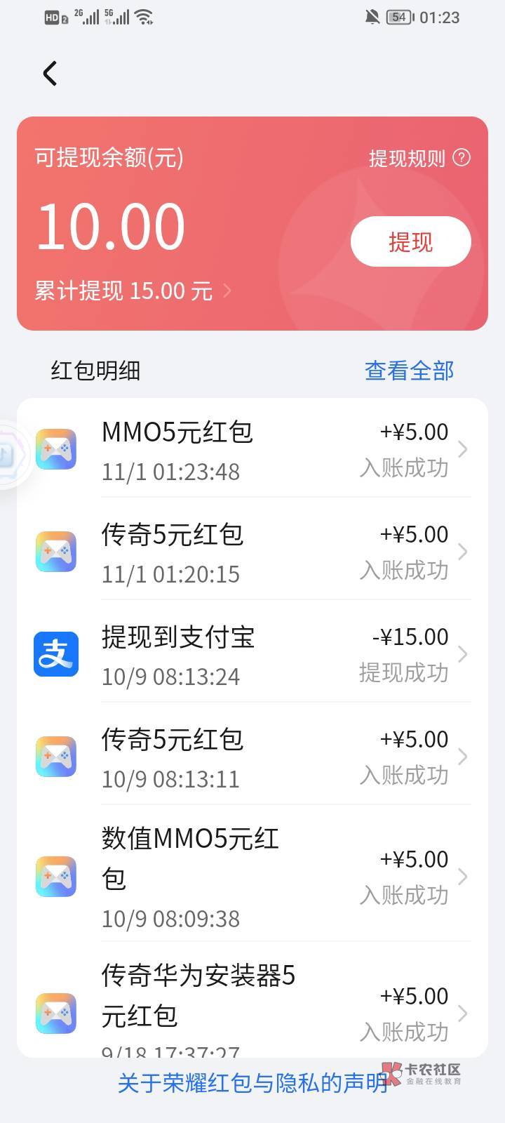 荣耀应用市场传奇游戏领现金红包活动