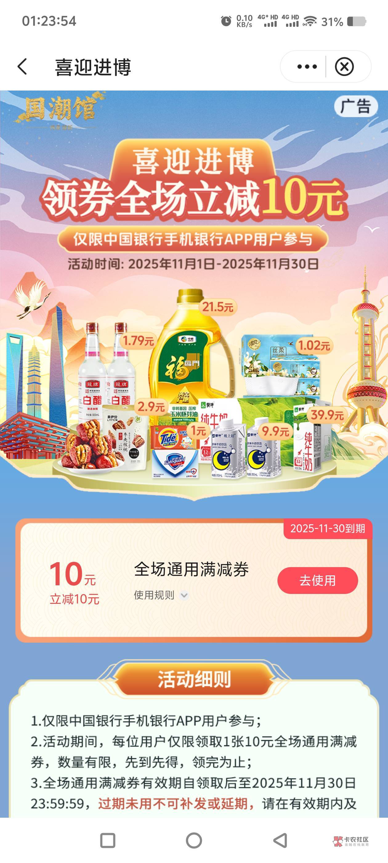 中行国潮馆喜迎进博领券全场立减10元活动