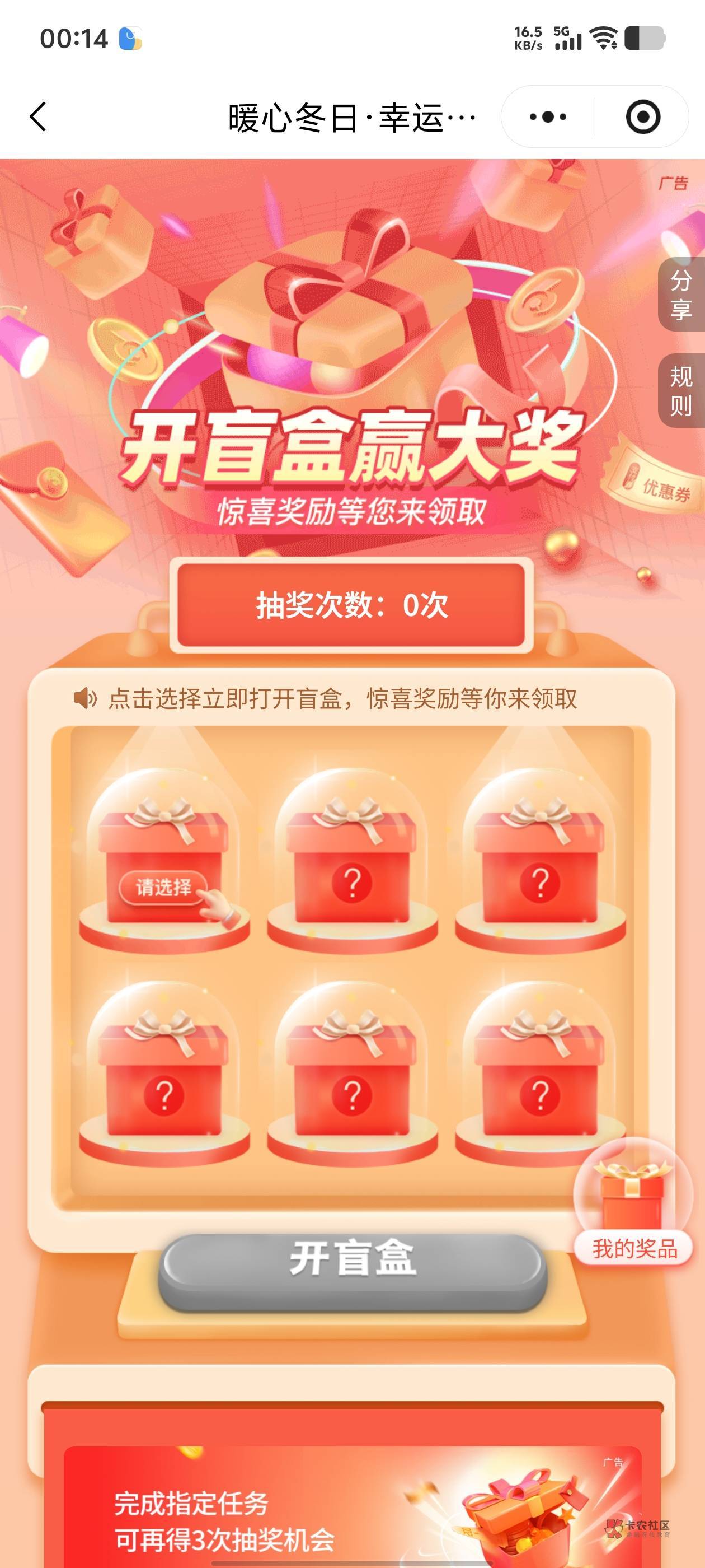 交通银行小程序山西暖心冬日幸运盲盒活动