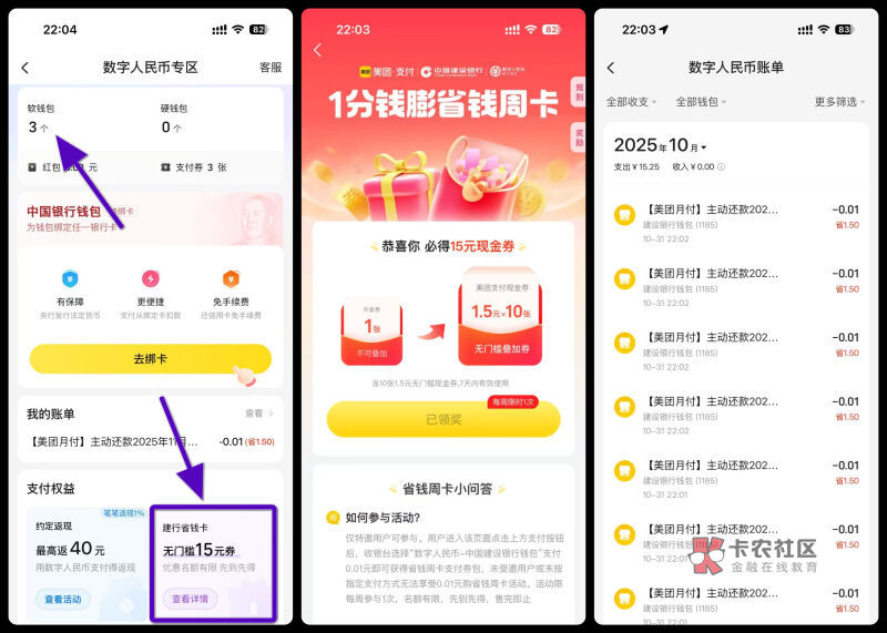 美团搜【数字人民币】 先绑建行钱包在领15券 可还月付,无门槛使用 - 冲鸭,现在变成1